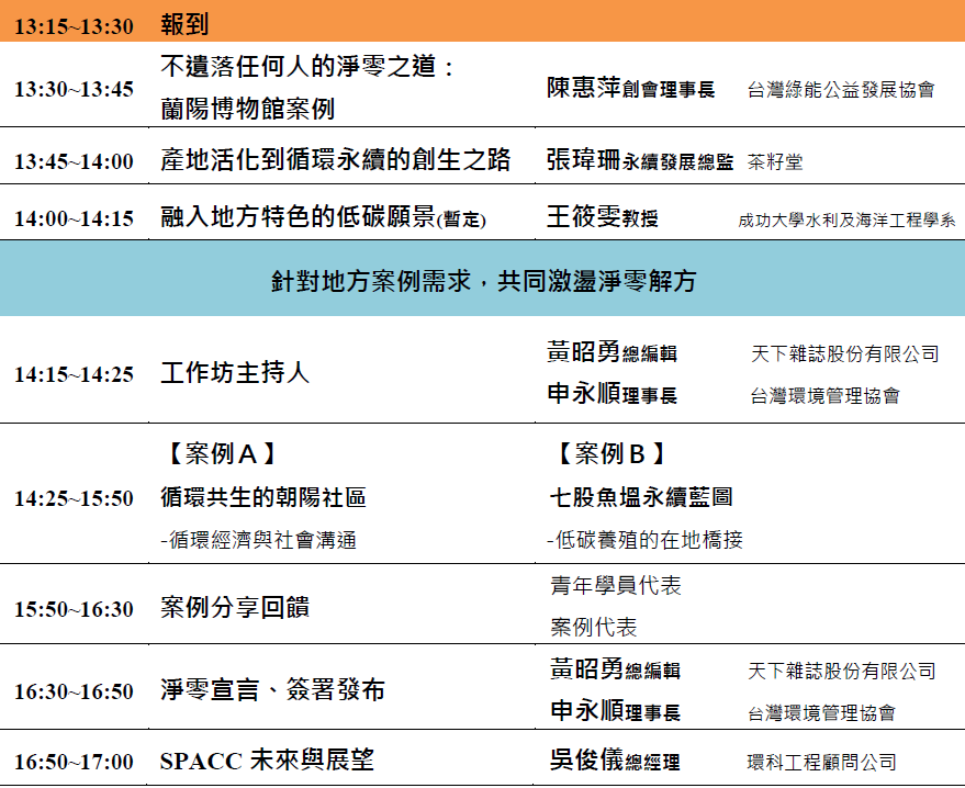 本次台灣氣候行動永續夥伴倡議(以下簡稱SPACC)舉辦之「國際淨零發展與在地實踐交流論壇」活動內容如下: