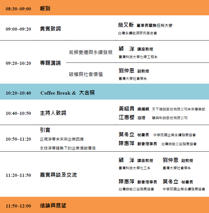 - 簡介:從國際趨勢到島內需求的落地,思考個人在淨零浪潮中如何定錨,讓自己也成為台灣的淨零孵化器。