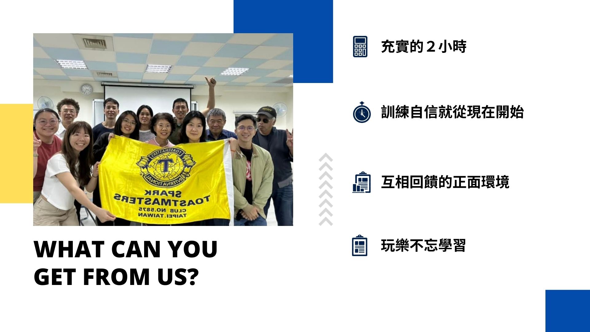 2. 透過觀賞演講會的會員們在台上的演講與主持, 增進英文聽力