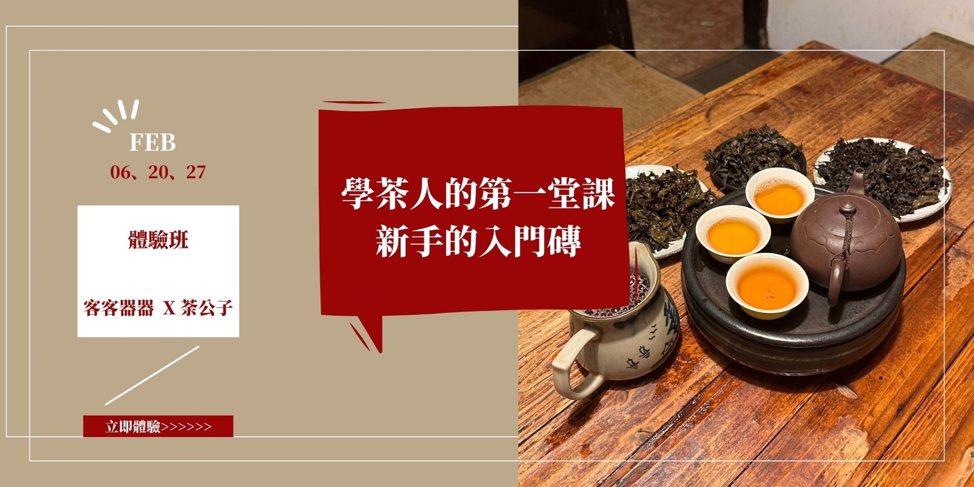 帶你走過所有細節,即便是第一次喝茶也沒問題,初心者超友好班級!