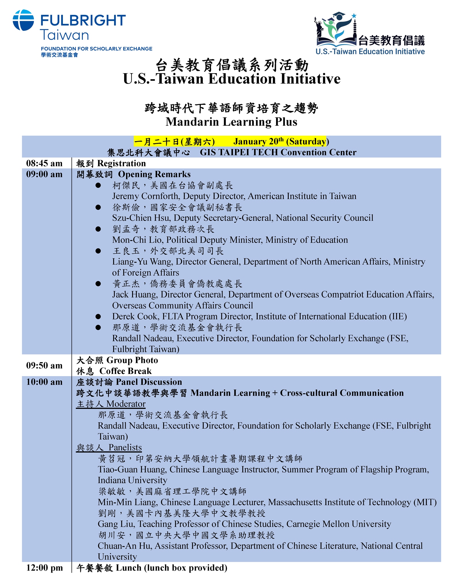 自2020年12月台美簽署「台美教育倡議」後,雙邊對於美國的華語教育相關計畫更加活躍。學術交流基金會(Fulbright Taiwan)與美國在台協會(AIT)教育部(Ministry of Education)及外交部(Ministry of Foreign Affairs)合作,再次舉辦華語教學研討會。此次主題為「跨域時代下華語師資培育之趨勢」,歷次研討會皆會邀請國務院華語學習相關計畫之華語教學助理計畫(FLTA)、關鍵語言教師計畫(TCLP)、關鍵語言增能計畫(CLEA)之相關合作夥伴及教師,以及台灣和美國的華語教學專家學者及第一線教師共襄盛舉,探討華語學習在不同領域的發展。此次特別針對跨領域的師資培訓進行進一步探討。希冀透過此場研討會,協助產官學界更加了解美方華語學習所需、台灣華語教育亮點,並促成台灣對美輸出華語教育更多合作機會。