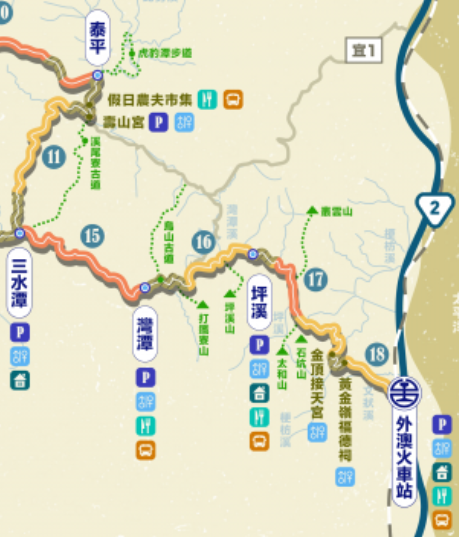 三水潭-外澳:灣潭古道、烏山越嶺古道、坪溪古道、石空古道(15公里,約需要5hrs)