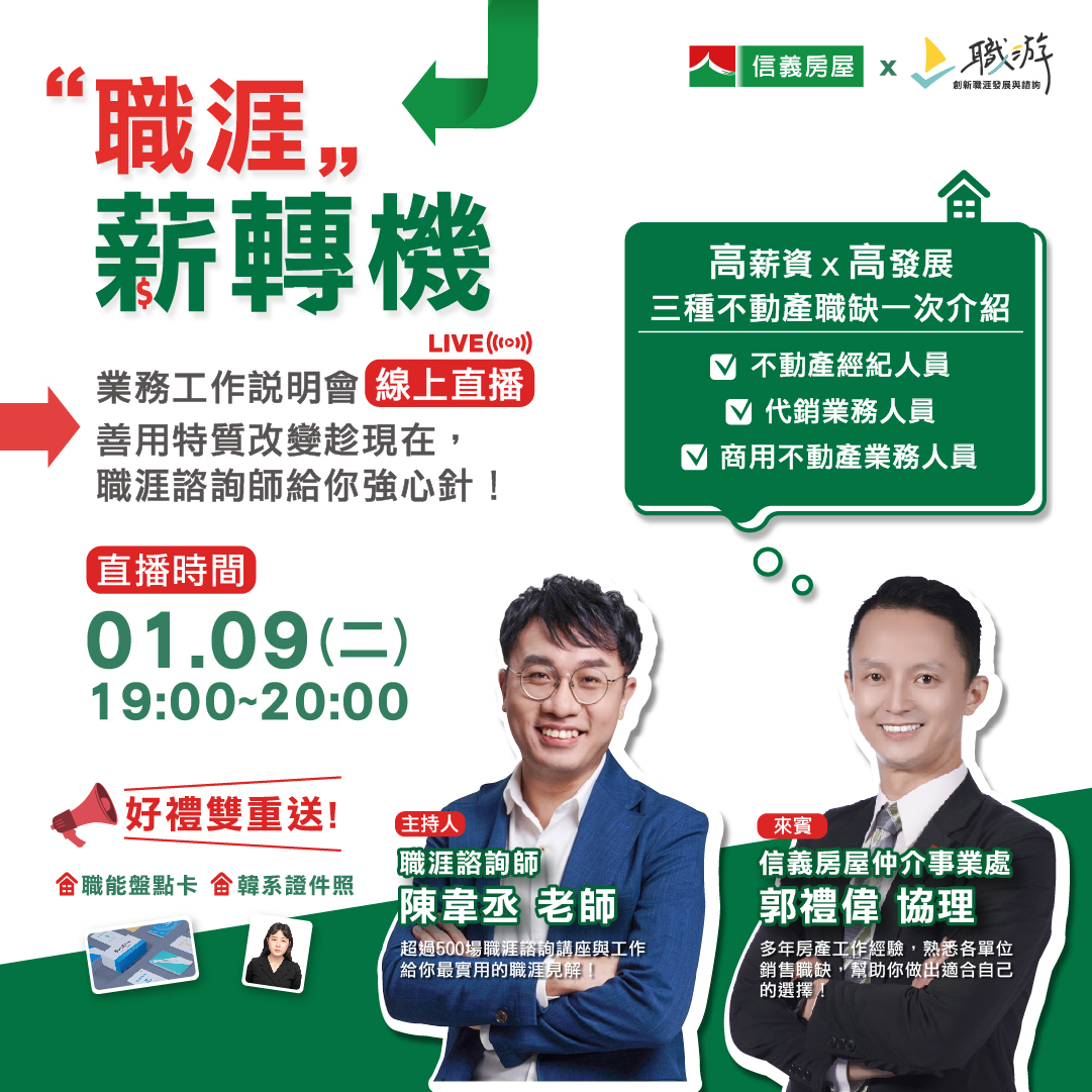 2024 年 1 / 9 (二)【職涯薪轉機】業務工作線上說明會 重磅登場