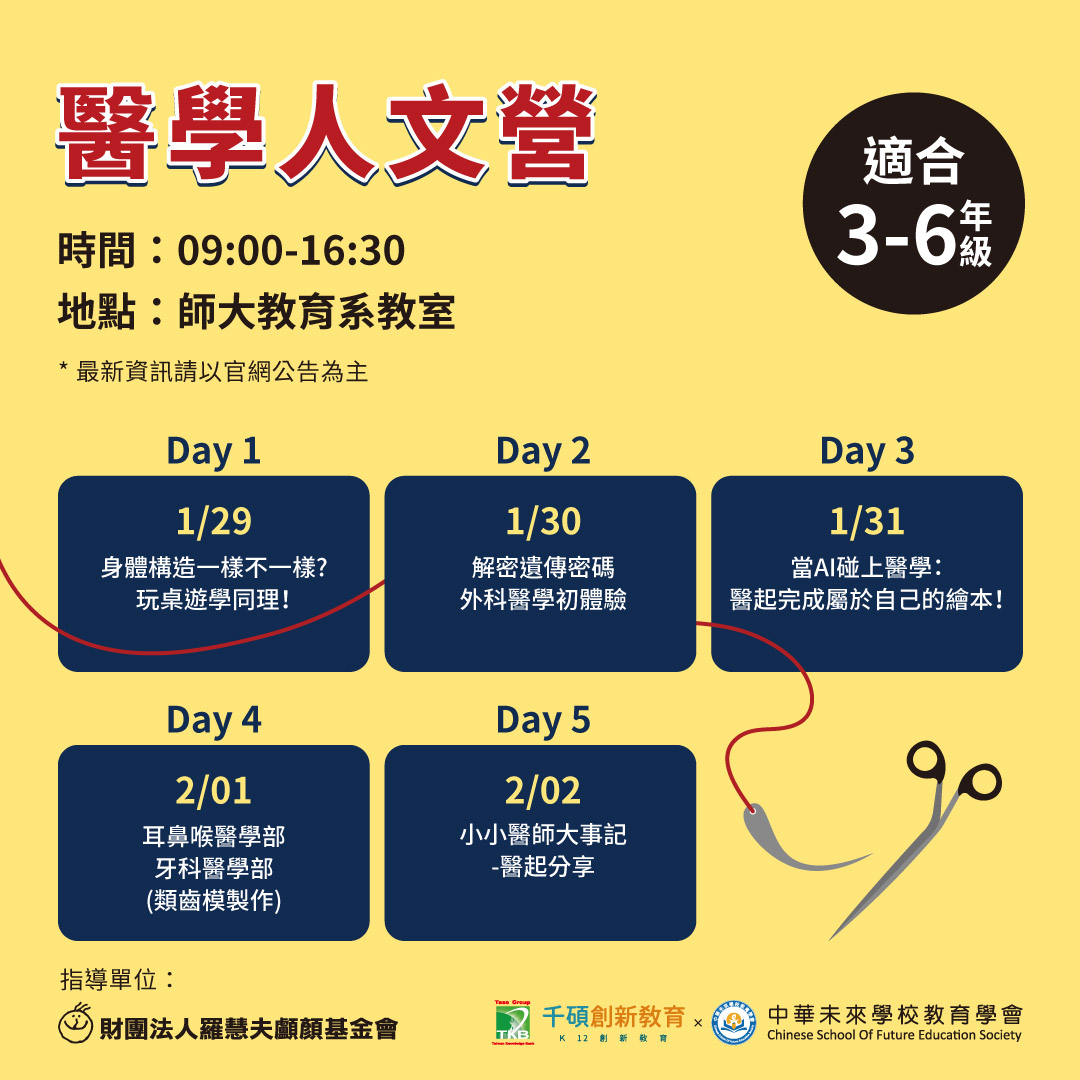 這個寒假,跟我們醫起穿上小小醫師袍,探索生命教育吧!