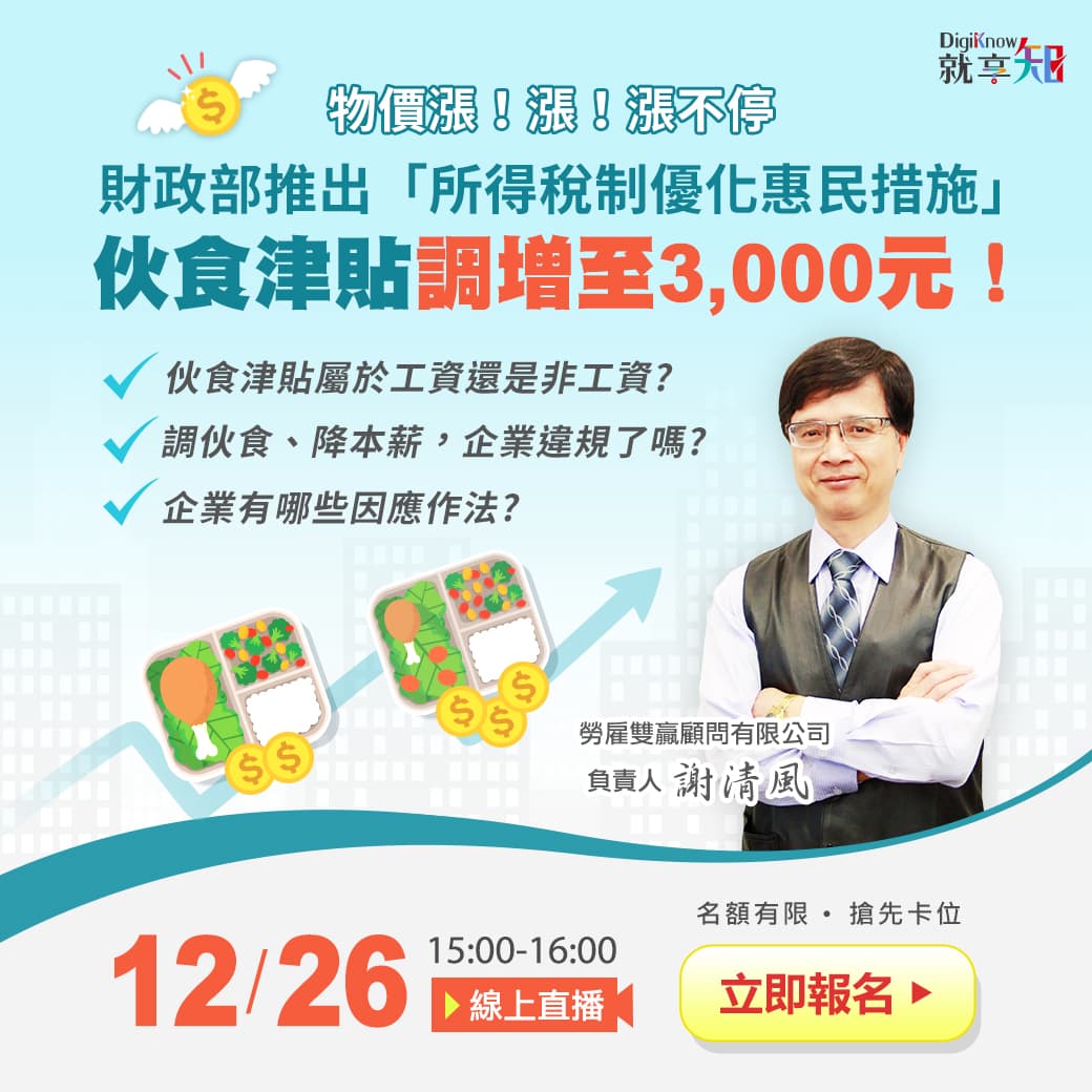 【清風俠開講】伙食津貼免稅額調增至3,000元,企業該如何因應?