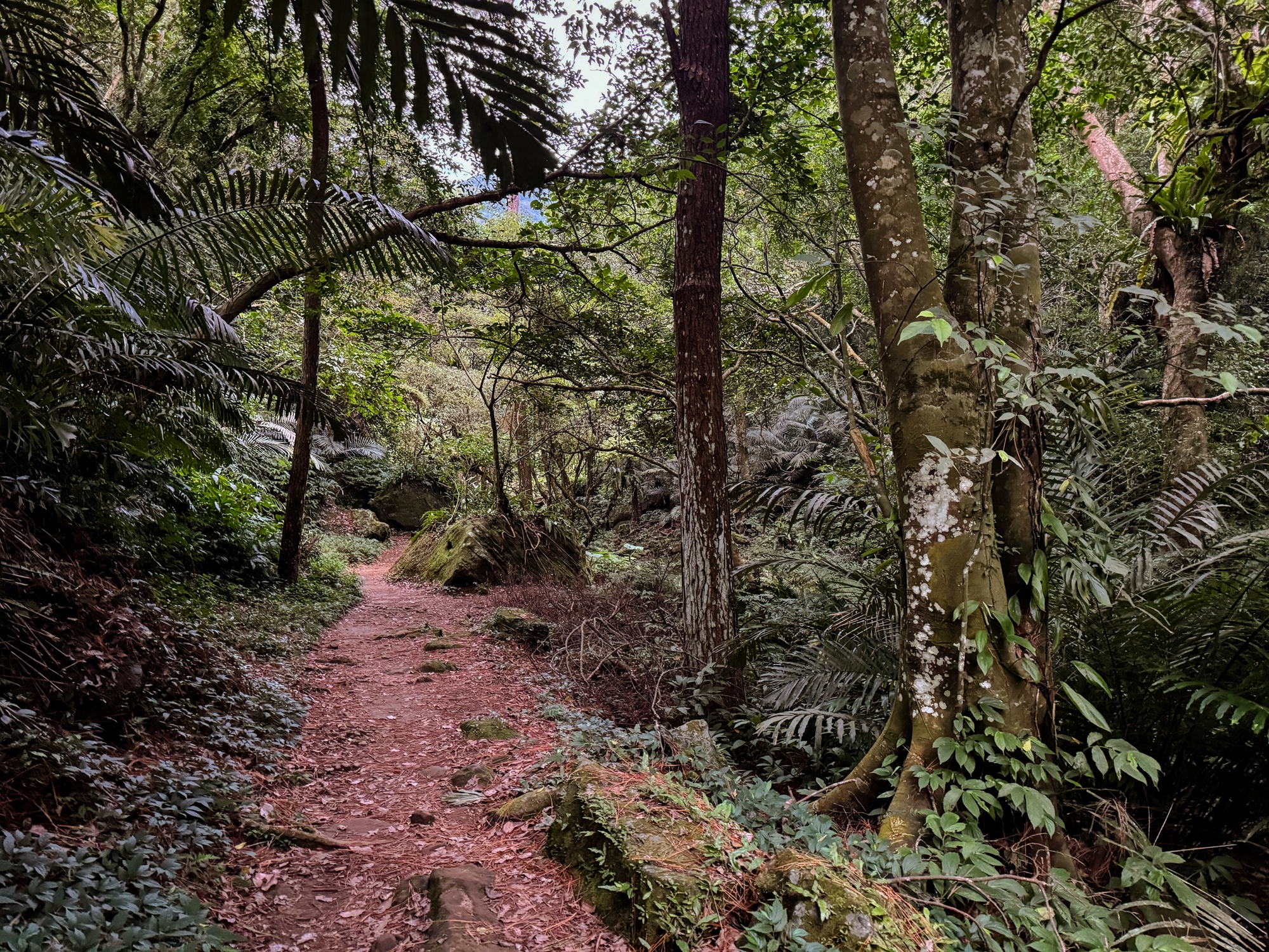 古道沿溪流緩緩而上,經後慈湖開始逐漸要接受陡坡的挑戰,