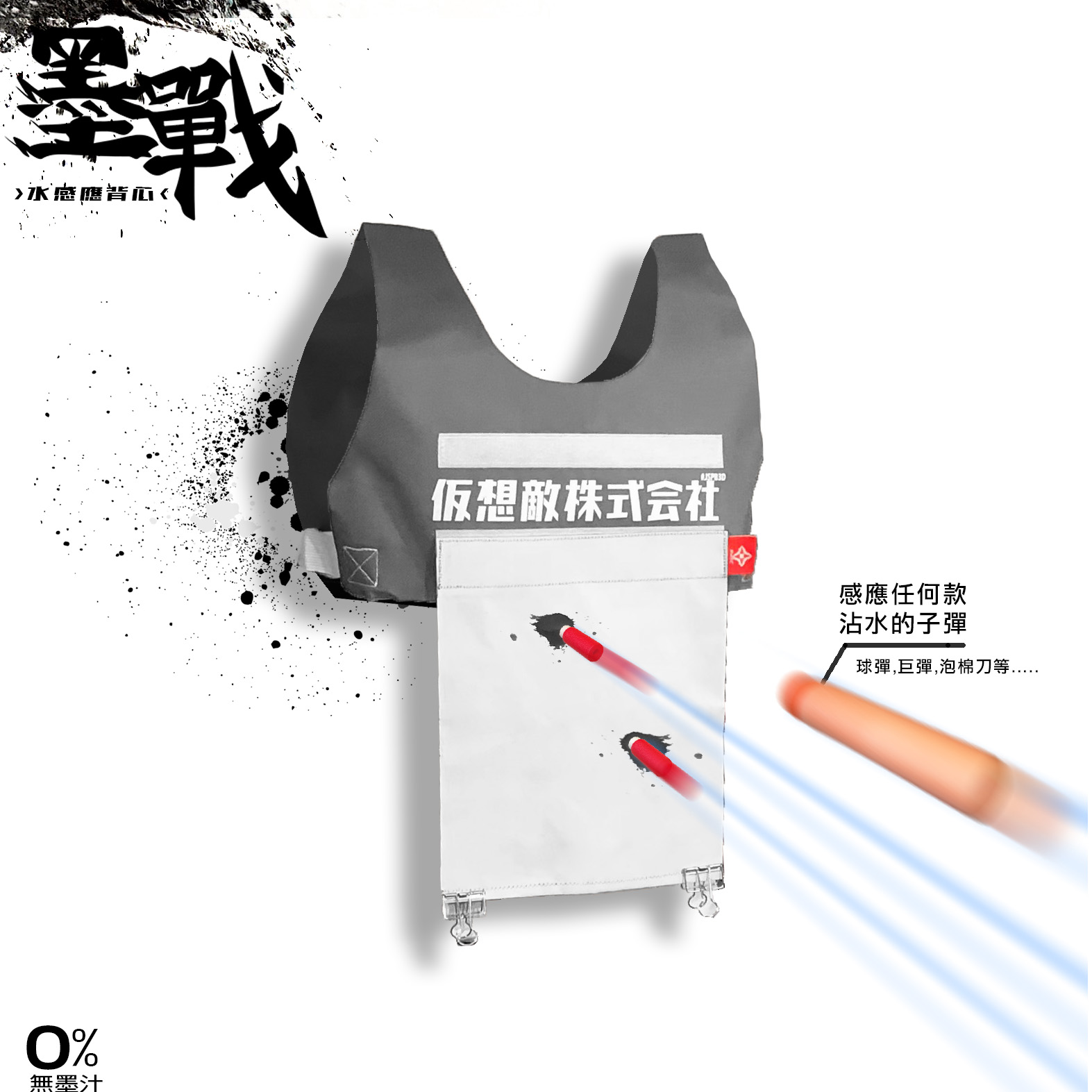 墨戰是水感應的背心,透過水氣判斷是否擊中,擊中後會有痕跡.
