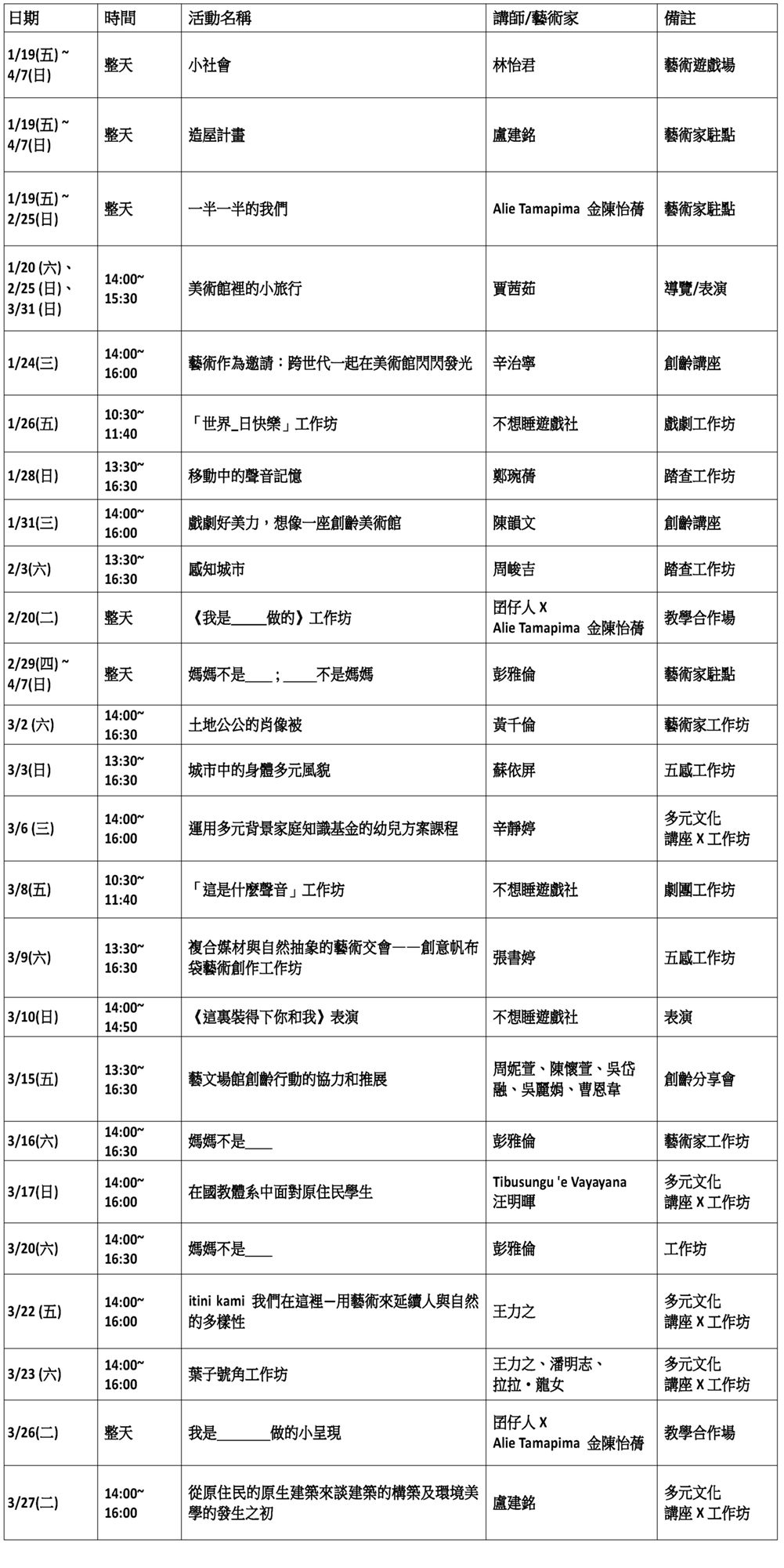 2.以上活動資訊請參考官網及桃美館臉書粉絲頁即時訊息,本館保留活動異動權利