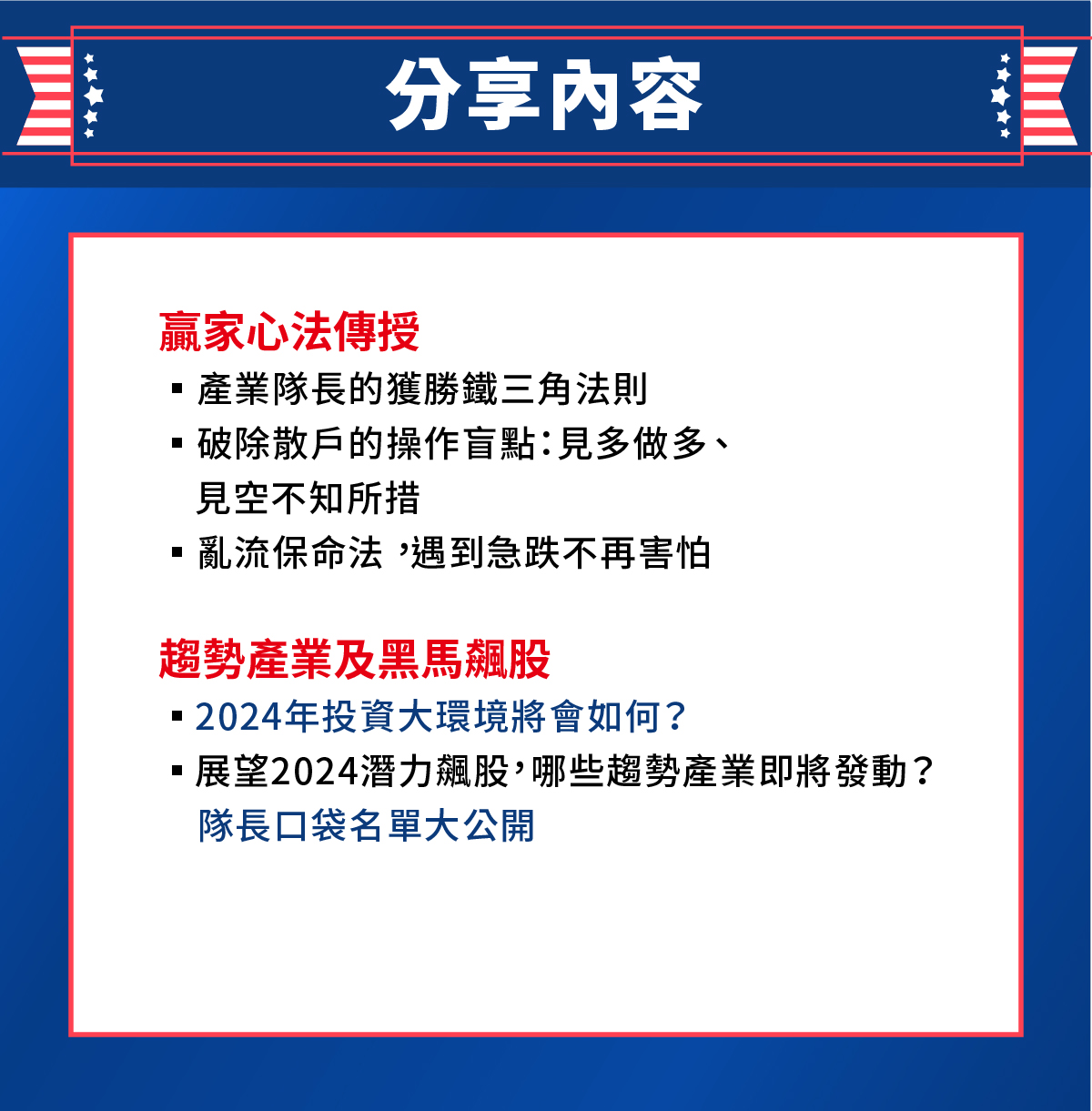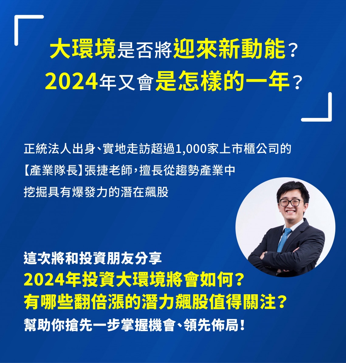 【額滿加開】不想天天看股票者最適合的2024趨勢飆股-產業隊長張捷|1月免費講座|今周學堂