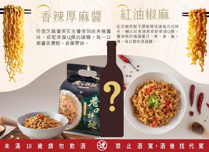 8種不同風格酒款搭配2種口味拌麵