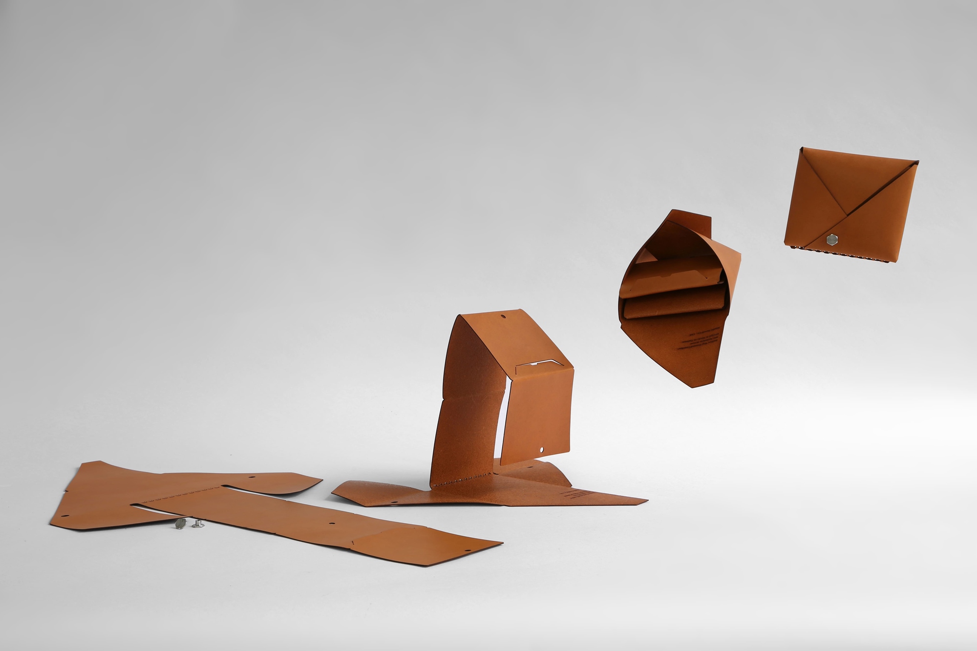 將摺紙結構融入皮夾之中,一片式的皮夾能夠帶給皮件較佳的強韌度,日後若皮夾有局部受損,藉由展開的便利性,進行修復與保養的工作。非常輕薄,結構穩固且充分展現皮革堅軔特性,透過精緻準確的折疊產生多個獨立空間,滿足使用上的多重需求。與傳統長夾相比,更薄、更極簡、更俐落,能夠輕鬆收納萬元,數個零錢銅板,與六個卡片收納夾層,輕鬆應對日常所需。