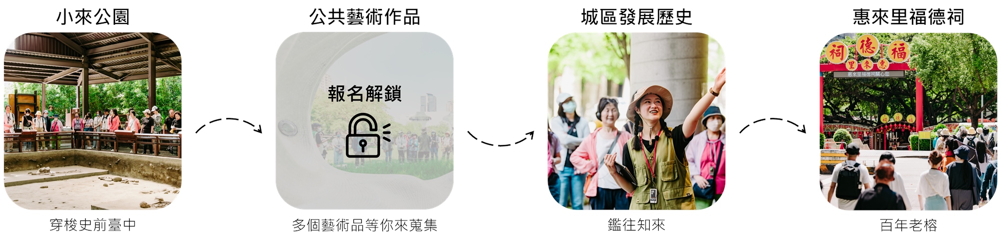 臺中國家歌劇院→小來公園→街區公共藝術品→惠來里福德祠→臺中國家歌劇院