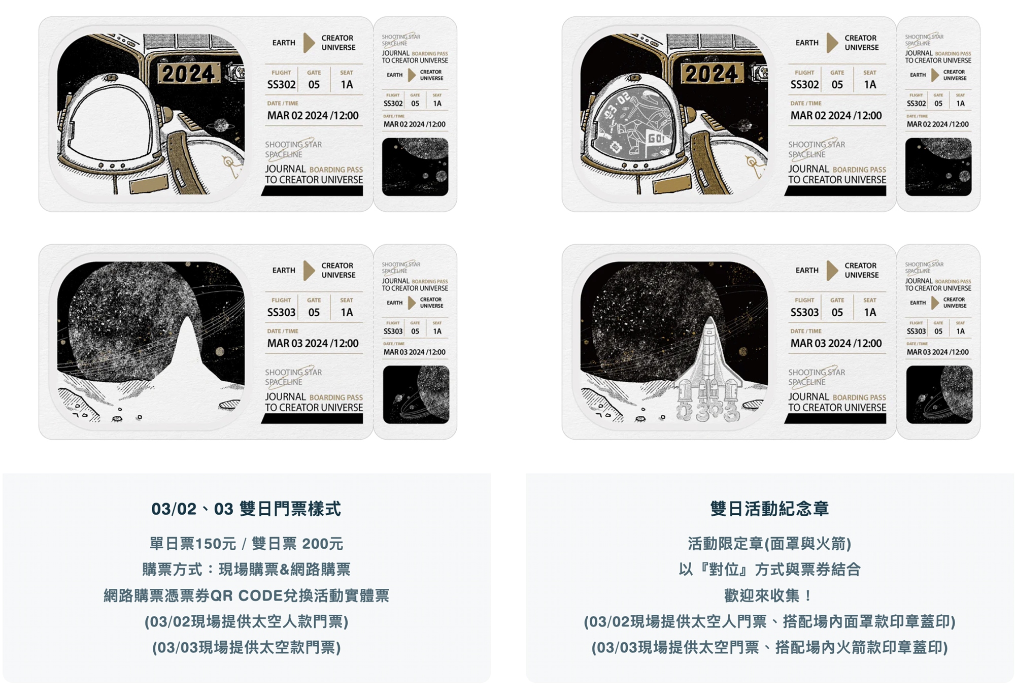 (03/03:宇宙款門票 搭配 場內太空梭款活動限定章)