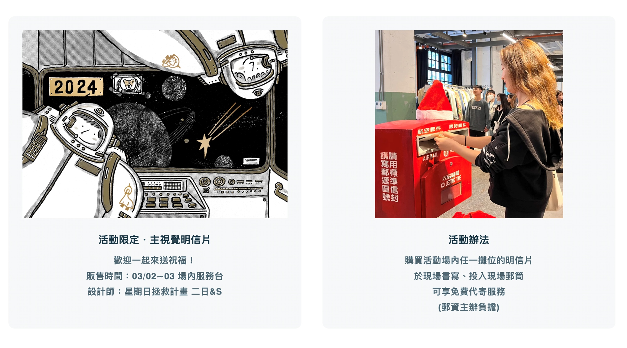 購買現場創作者的明信片,現場書寫即可享免費代寄服務