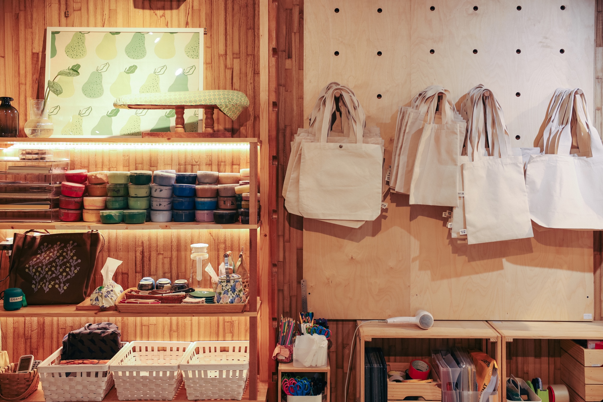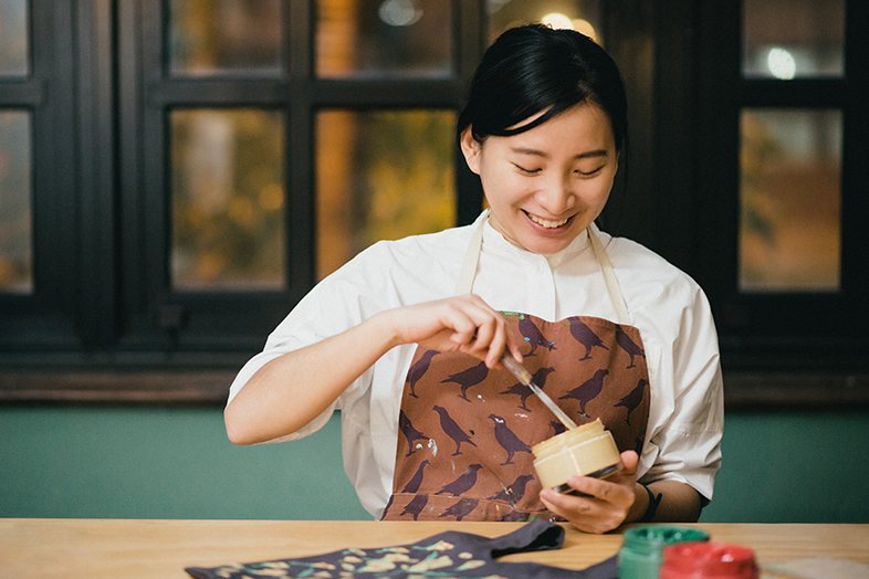 位於大稻埕的品牌旗艦店「印花作夥」是一處美麗的百年老宅,除了販售設計商品,也有以茶巧克力聞名的咖啡館「COFE」、以及染織工作室「蚤操」進駐。裡面還有規劃完善的手作教室,可以體驗絹印、縫紉...等各種手作活動。