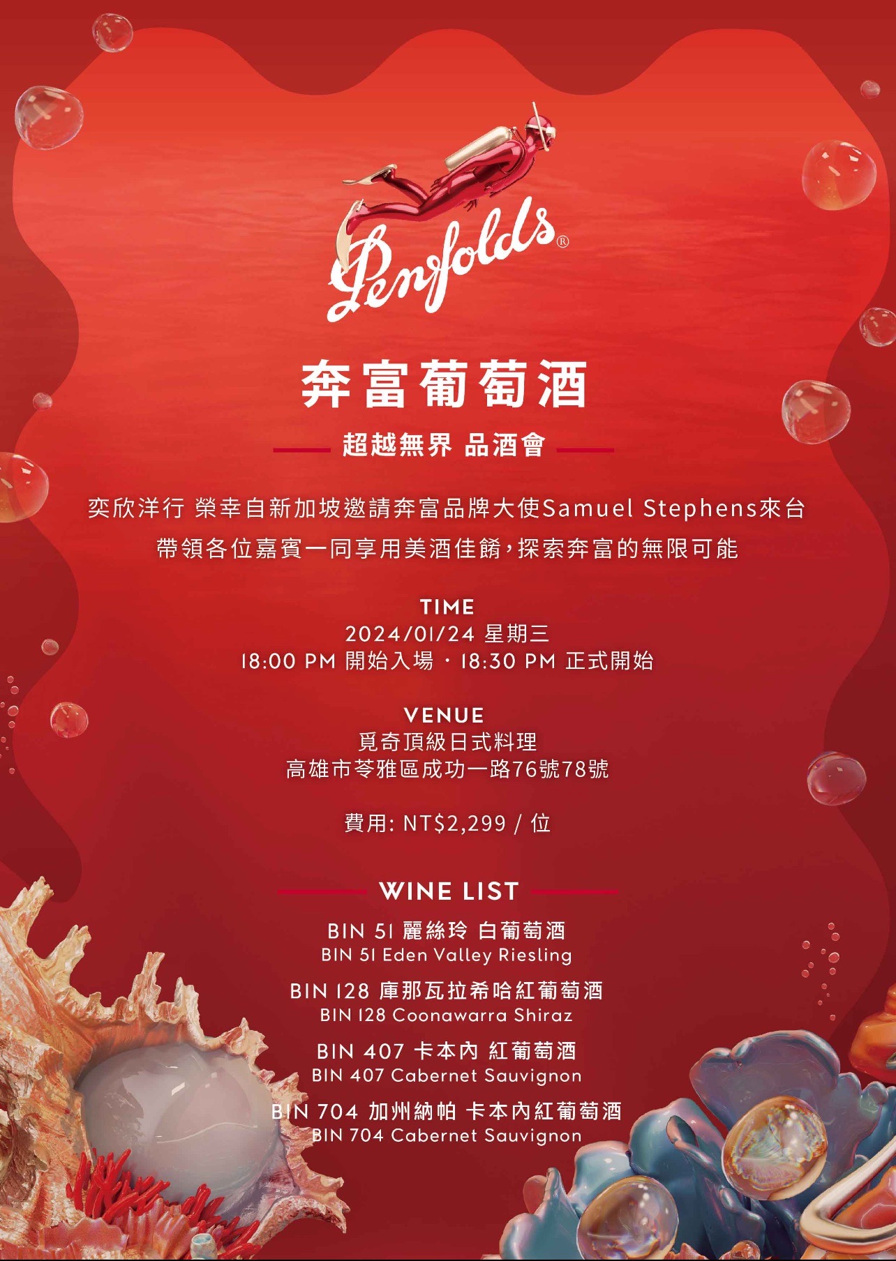 親自訪台介紹奔富酒莊精選以及高階酒款,並搭配道地食材做出美味的日式料理