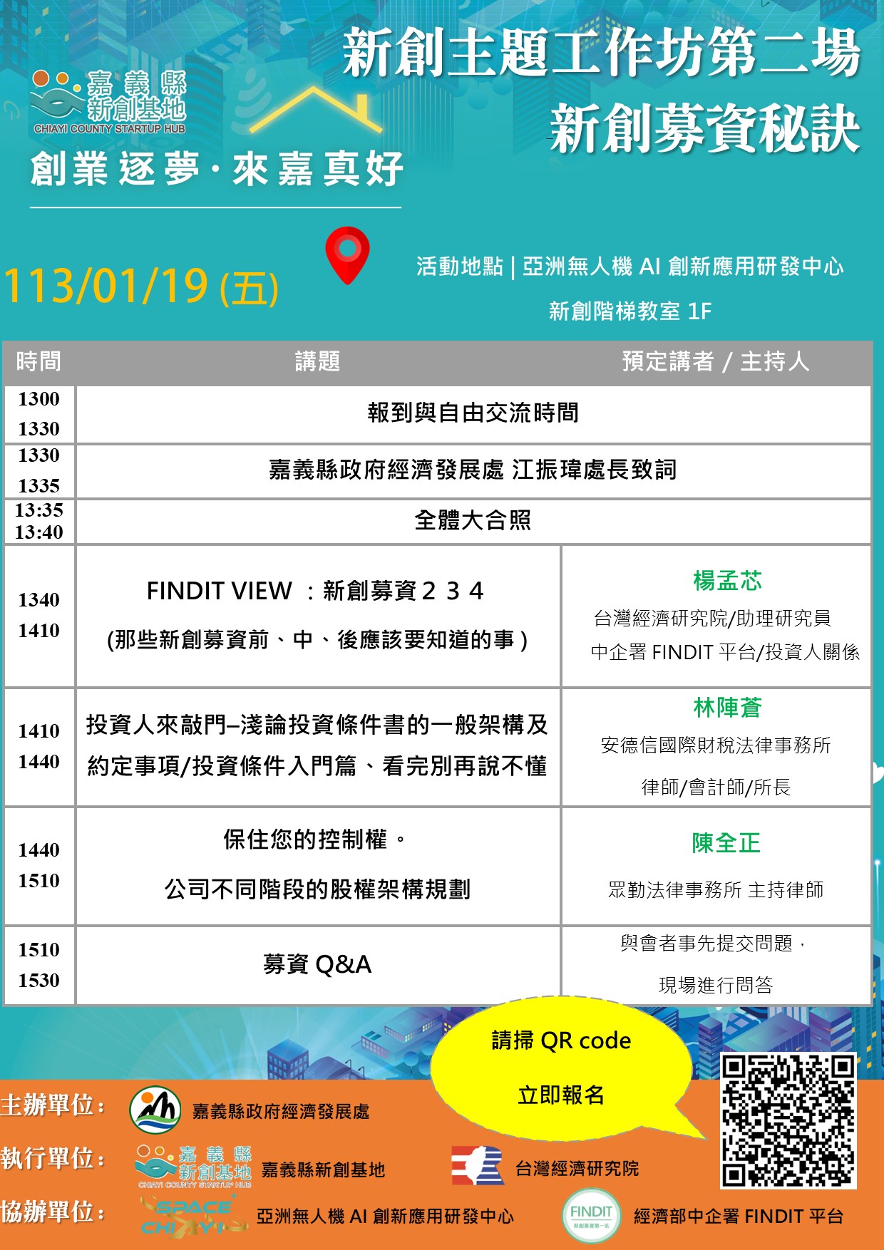 - 協辦單位:經濟部中企署FINDIT平台、亞洲無人機AI創新應用研發中心