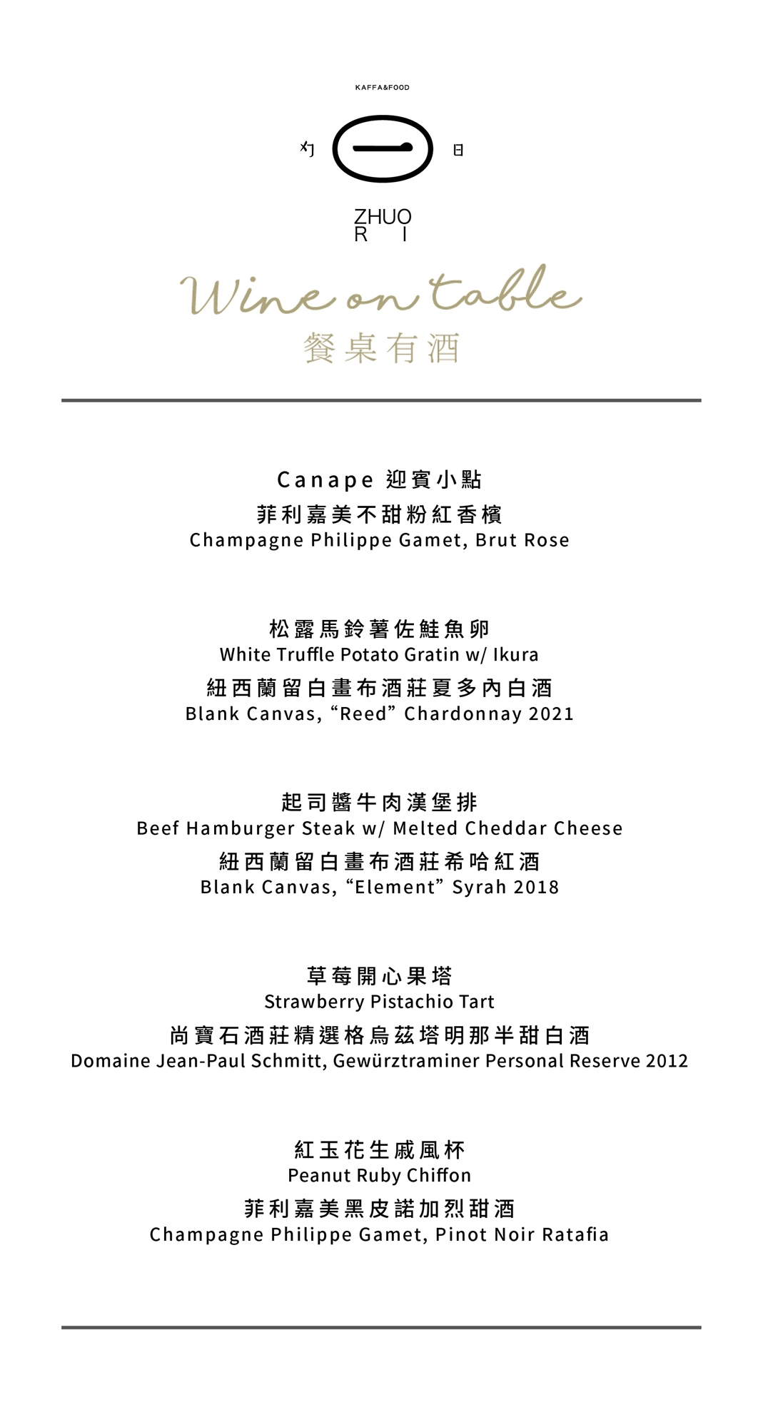 - 菜單基於概念完整,僅提供牛肉替代品項,恕不接受其他特殊飲食調整,造成不便敬請見諒。