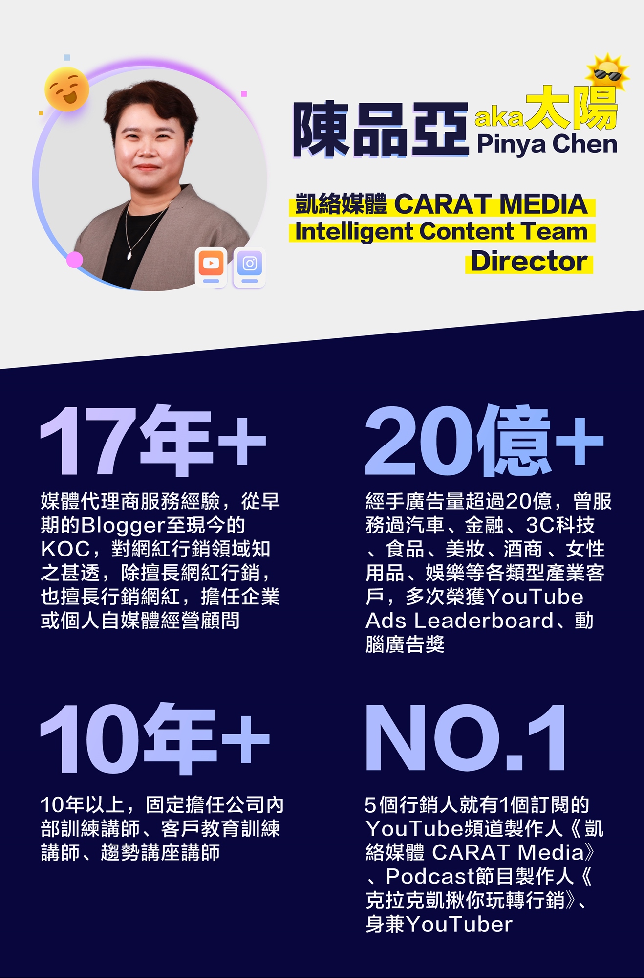 - 品牌端行銷管理者:團隊的人力及預算都有限,需要帶領團隊有效定錨品牌社群經營社策略,提升在社群上的影響力及提升團隊工作效率者