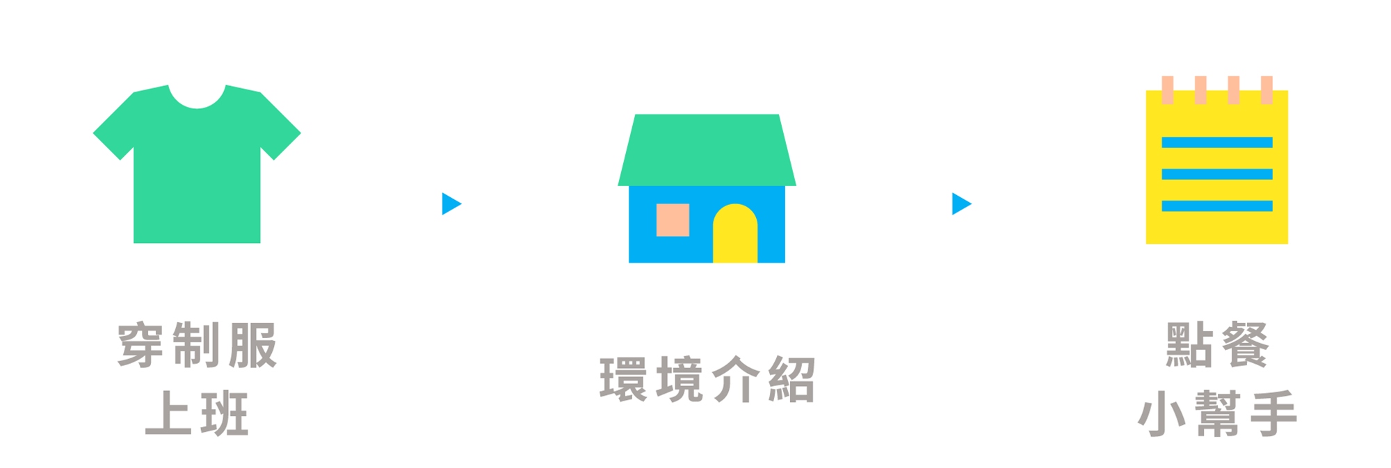 接下來就是要認識工作的環境,身為一個小小店長可是有很多事情要做的歐。不只是幫顧客點餐和製作飲品,我們也需要認識杯子上的各種圖案,知道如何透過機器幫客人點餐,以及使用機器來製作飲品。