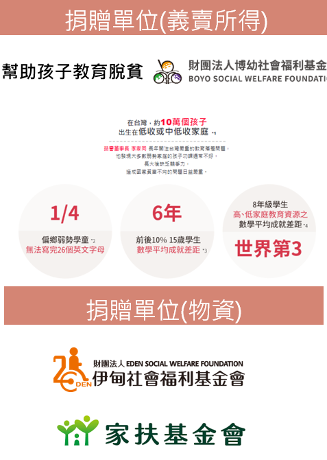 售出金額全數捐贈公益團體:博幼社會福利基金會