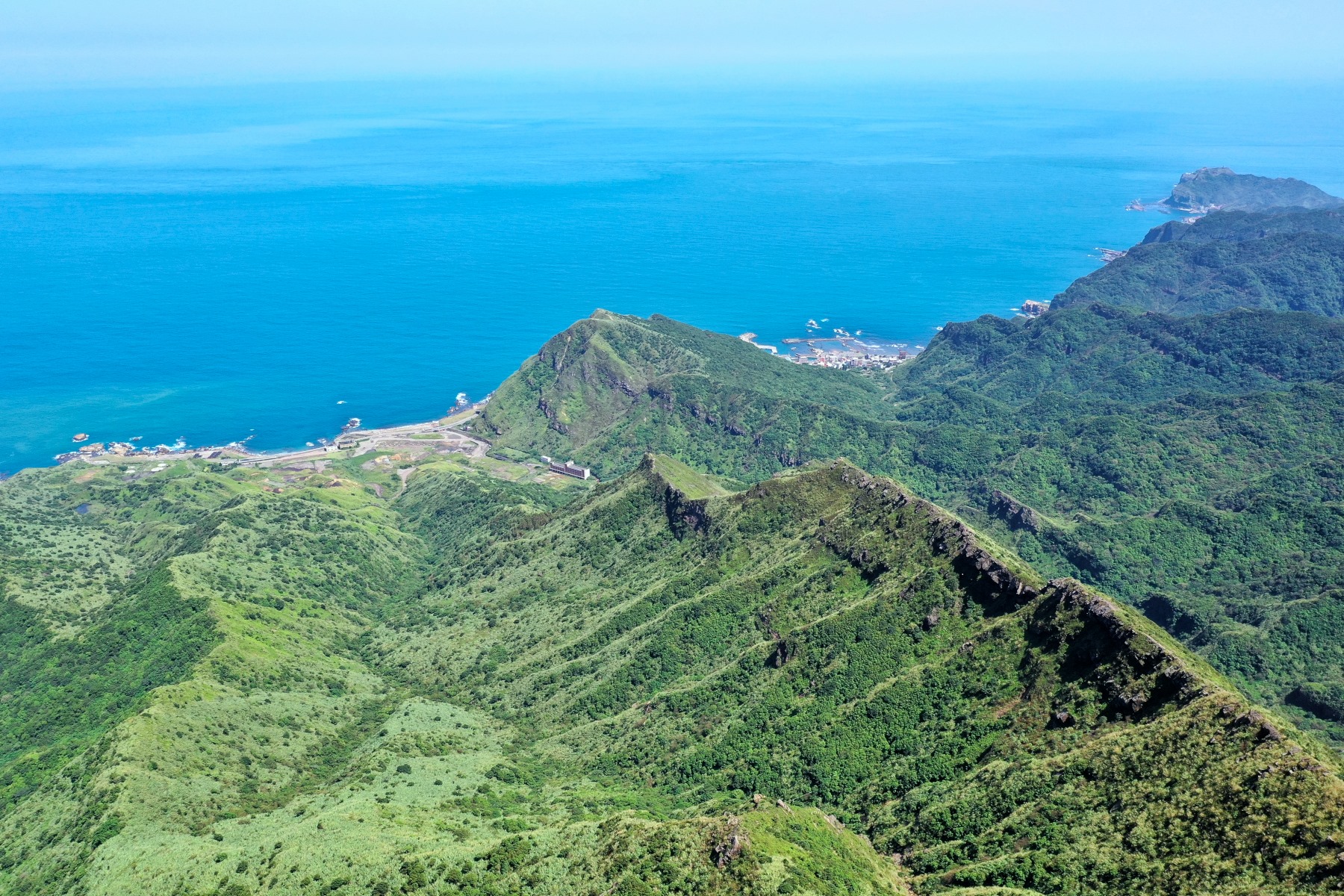 我們站在山的邊緣,望向大海,享受著微風吹拂
