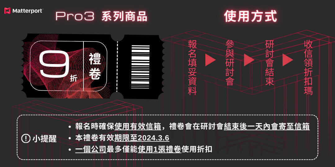歡迎加入我們Matterport Pro3 3D環景掃描器研討會,一窺Matterport Pro3 2024新時代3D環景掃描技術!