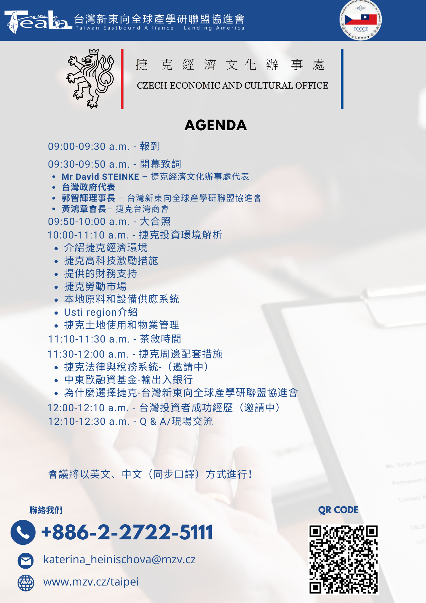 🇨🇿🇹🇼捷克經濟文化駐台北辦事處、捷克台灣商會和台灣新東向全球產學研聯盟協進會特此邀請您參加捷克半導體投資商機說明會,您將獲得有關台灣公司在捷克的商業和投資機會所需的所有資訊。