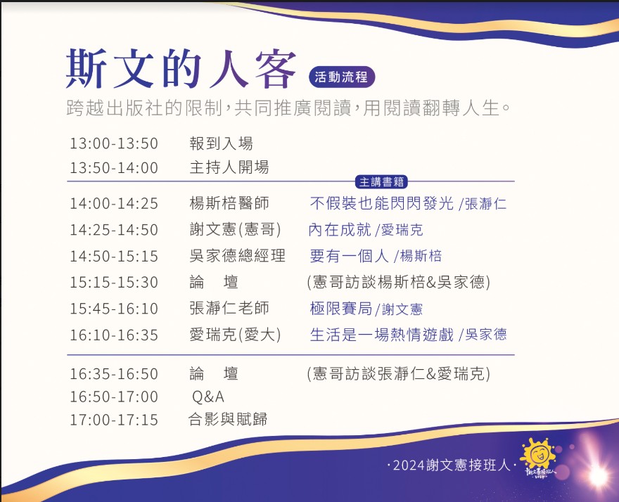 13:00-13:50排隊驗票、簽書 (13:00開放入場)