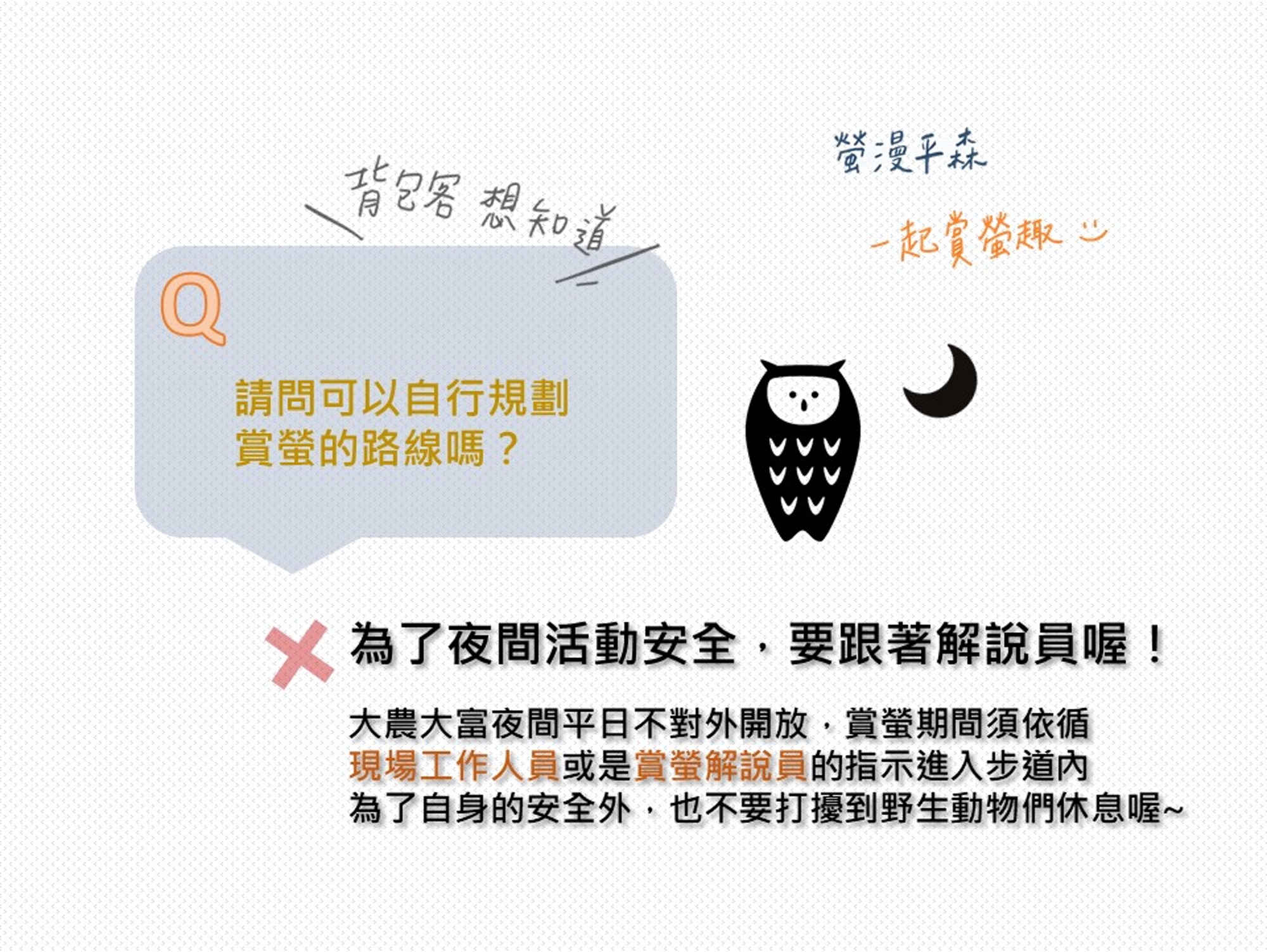 Rule 5. 賞螢專車識別牌為回程乘車識別,請妥善保管。並請乘車民眾注意回程發車時間,感謝配合!