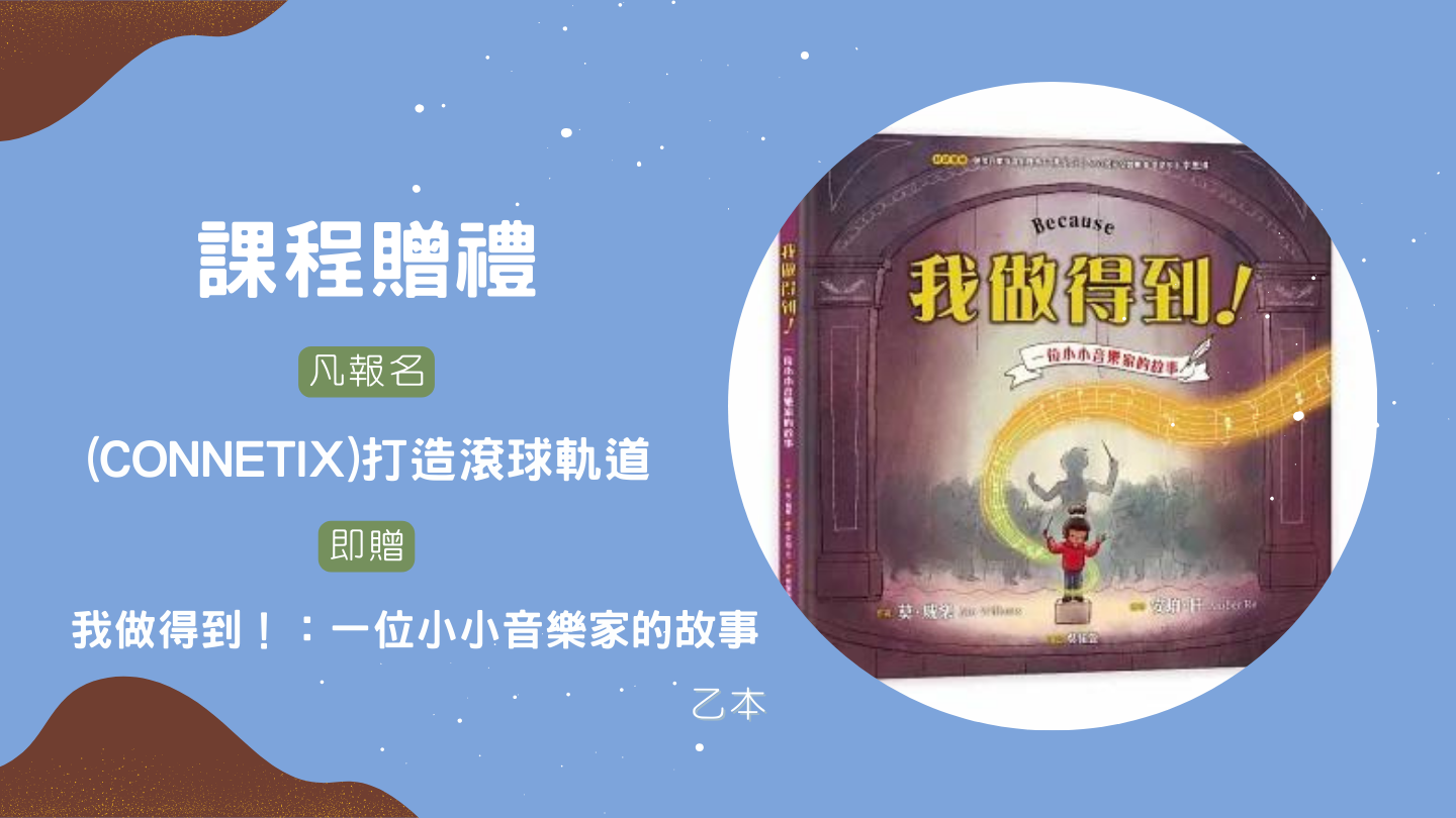 🎁 凡報名認識(CONNETIX)打造滾球軌道課程,即可獲得《我做得到!── 一位小小音樂家的故事》繪本乙本。