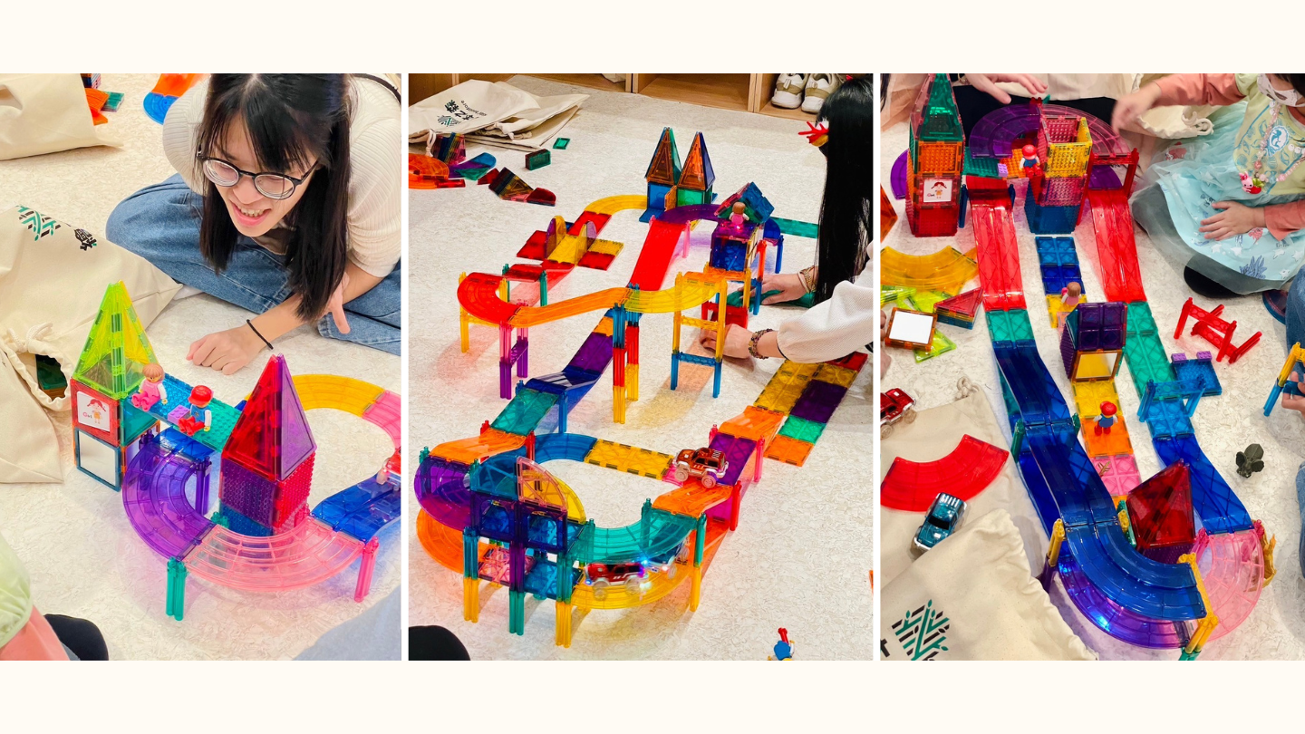 磁力片大軍悄悄來到華山繪本之森,這次加入了生力軍-來自澳洲的Connetix Tiles磁力片,絕美粉彩透光設計,還可相容多數大廠的磁力片,讓孩子的作品更有透視感及磅礡氣勢,孩子們的快樂,我們來守護!