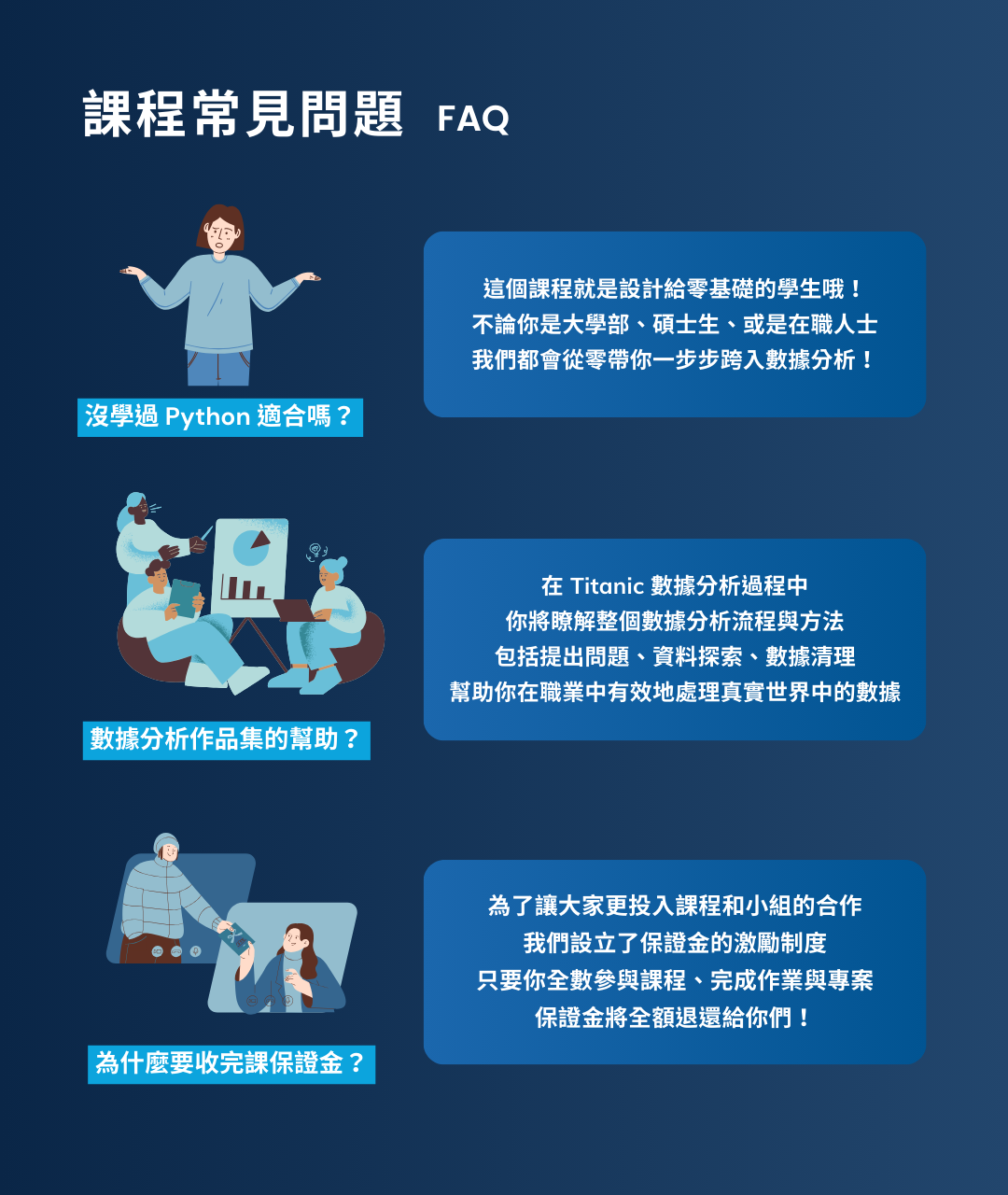 大家放心,只要大家認真上課並達成以上條件,保證金將全數退還給你們!