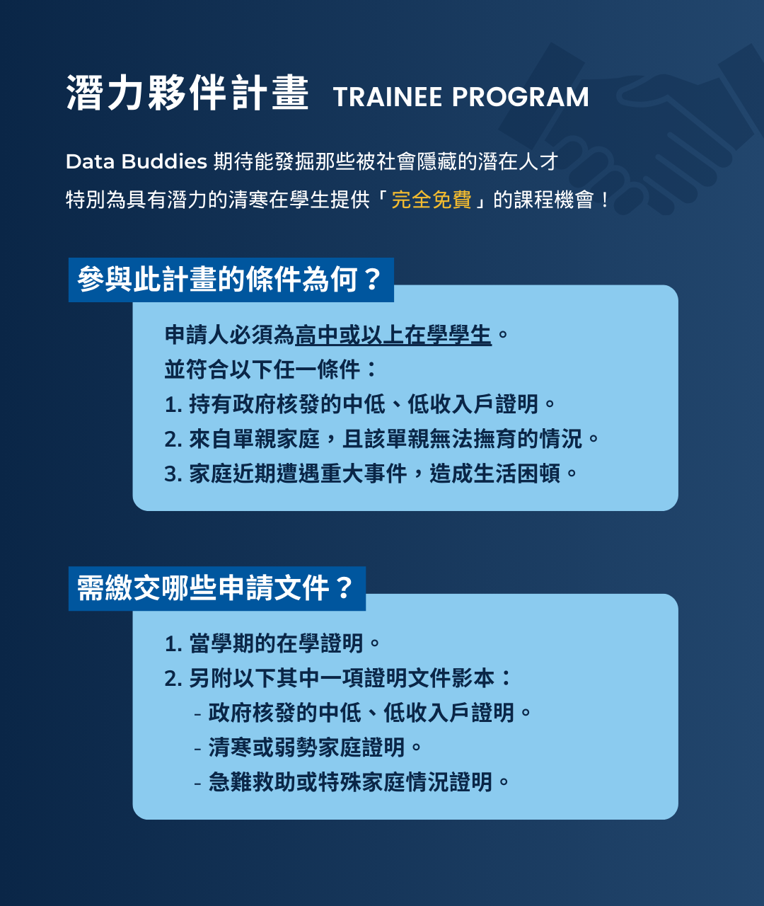 - (1/24-2/23)潛力夥伴計畫:完課保證金 2,000 元