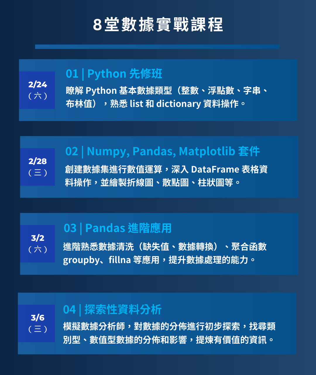 - (2/12-2/23)原價:5,900 元 + 完課保證金 2,000 元