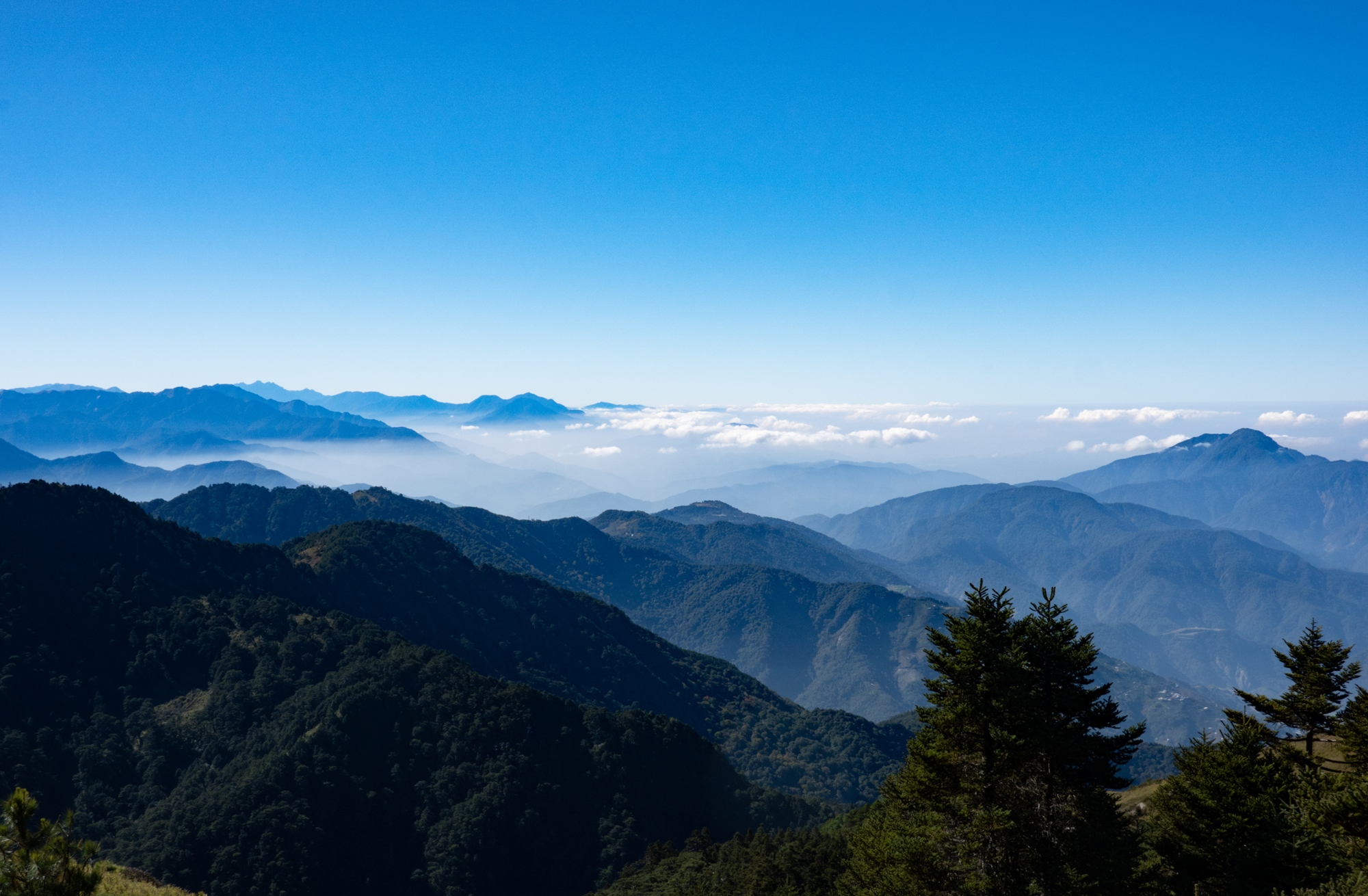 經過上上下下的假山頭,抵達合歡西峰後,將有層層山巒 盡收眼底