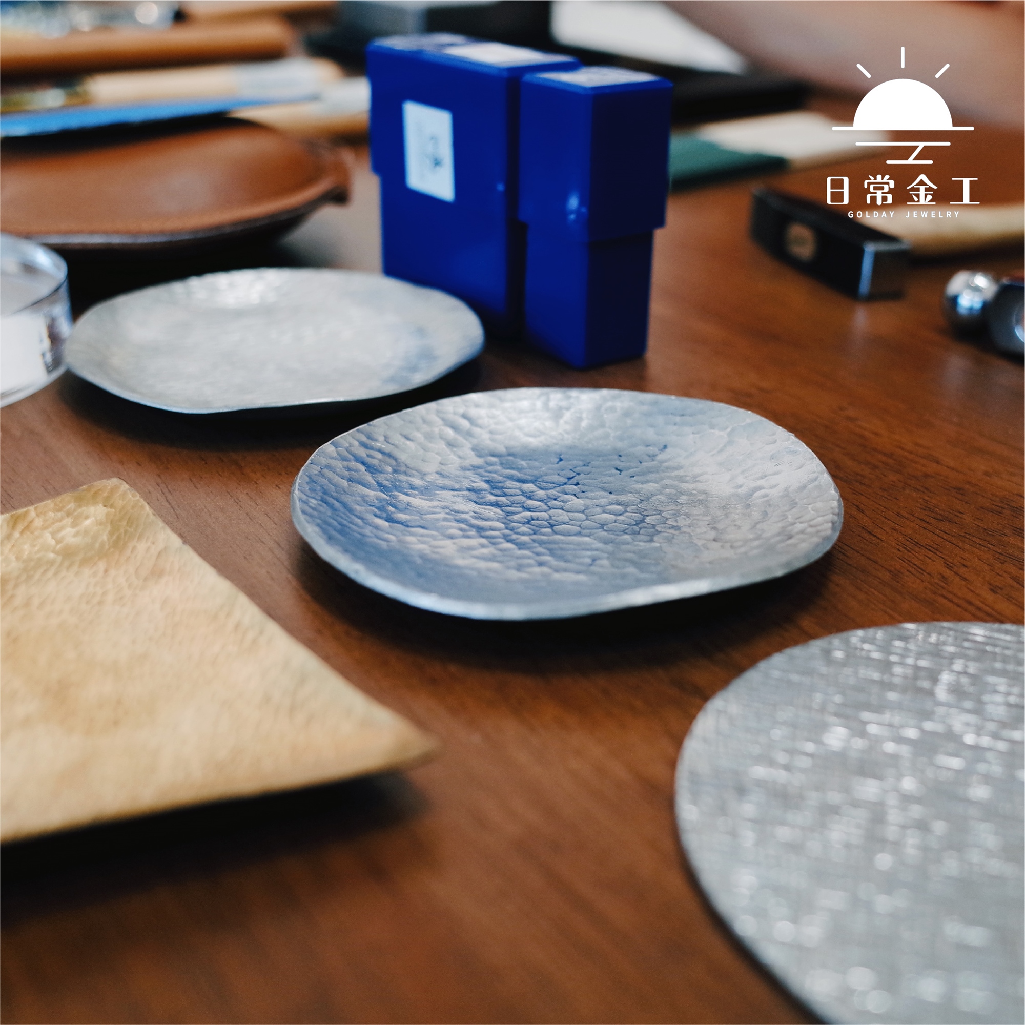 「錫」在金屬中相對是較軟的金屬,無毒無味的它很適合結合金工鍛敲的技法,在表面敲擊出漂亮的紋路,讓錫盤既有手工感也能融入日常使用。本堂課會學習到金屬鍛敲的基礎技法,認識不同鎚子、創造不同紋路,讓你可以細細體會金屬迷人的地方!
