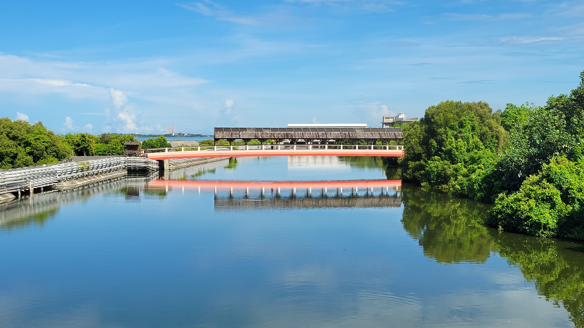 穿越大鵬灣自行車主路線,迎接獨特的橋樑,橋亭涼爽舒適,猶如木船行駛於藍天綠林之間。在此短暫停留,感受微風拂面、陽光穿透,與大自然共鳴共脈動的生態之旅。