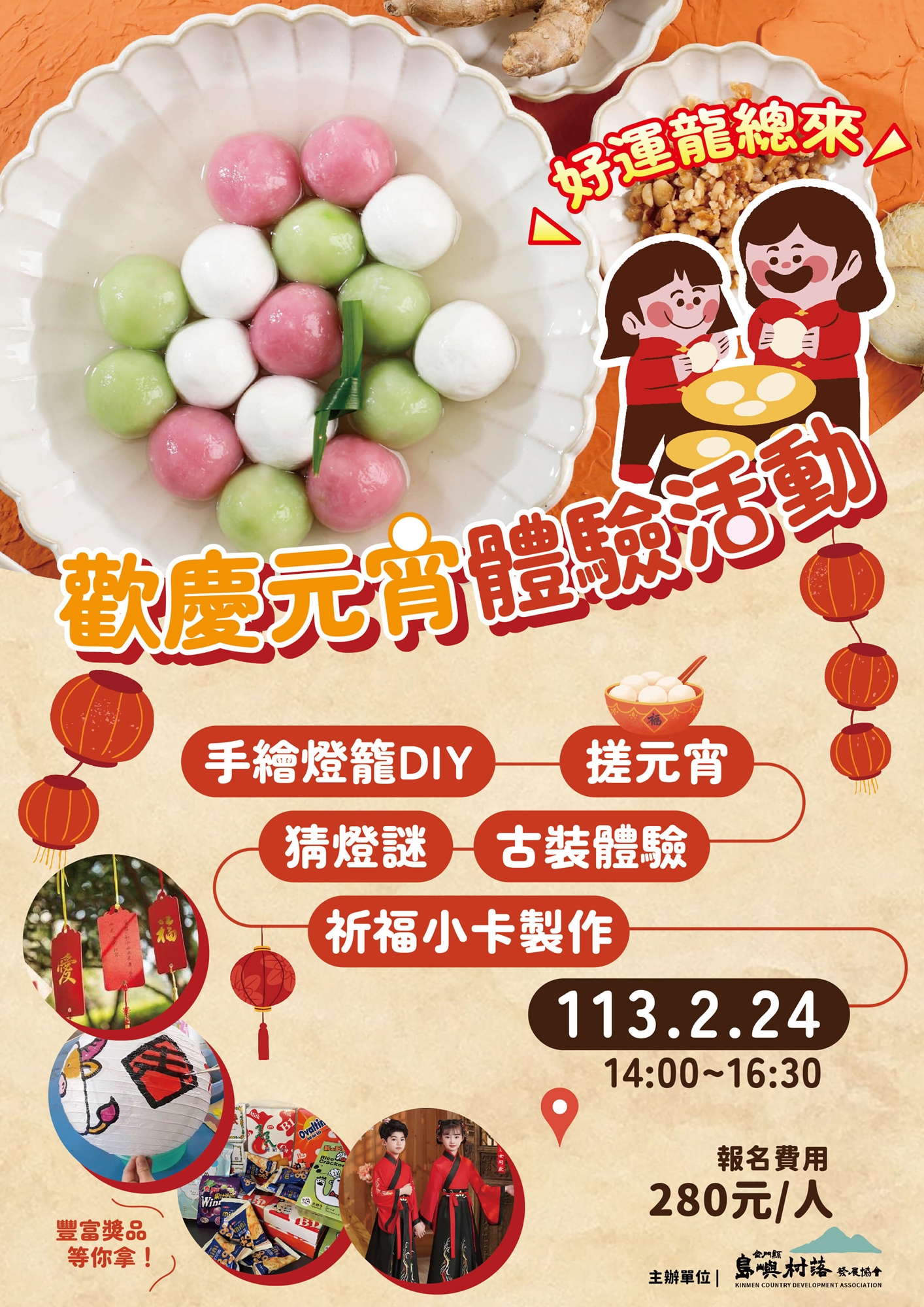 傳統元宵節都要來上一碗溫熱香甜的湯圓,此次體驗活動規劃親手搓元宵的活動,讓家長和孩童親自體驗搓元宵的樂趣,製作完成後,由工作人員將元宵烹煮熟成,一同享受軟糯的湯圓。