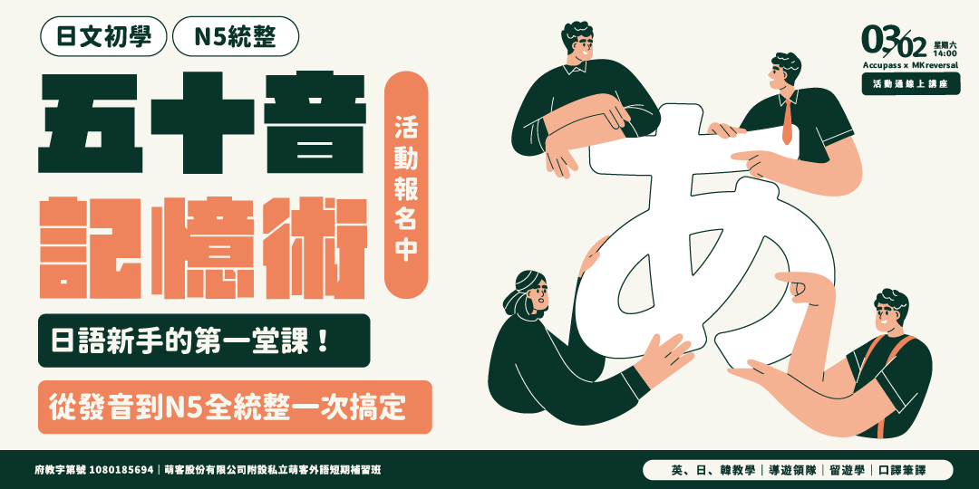 在這場講座中,Maaku老師將帶著你一同認識五十音的記憶訣竅,