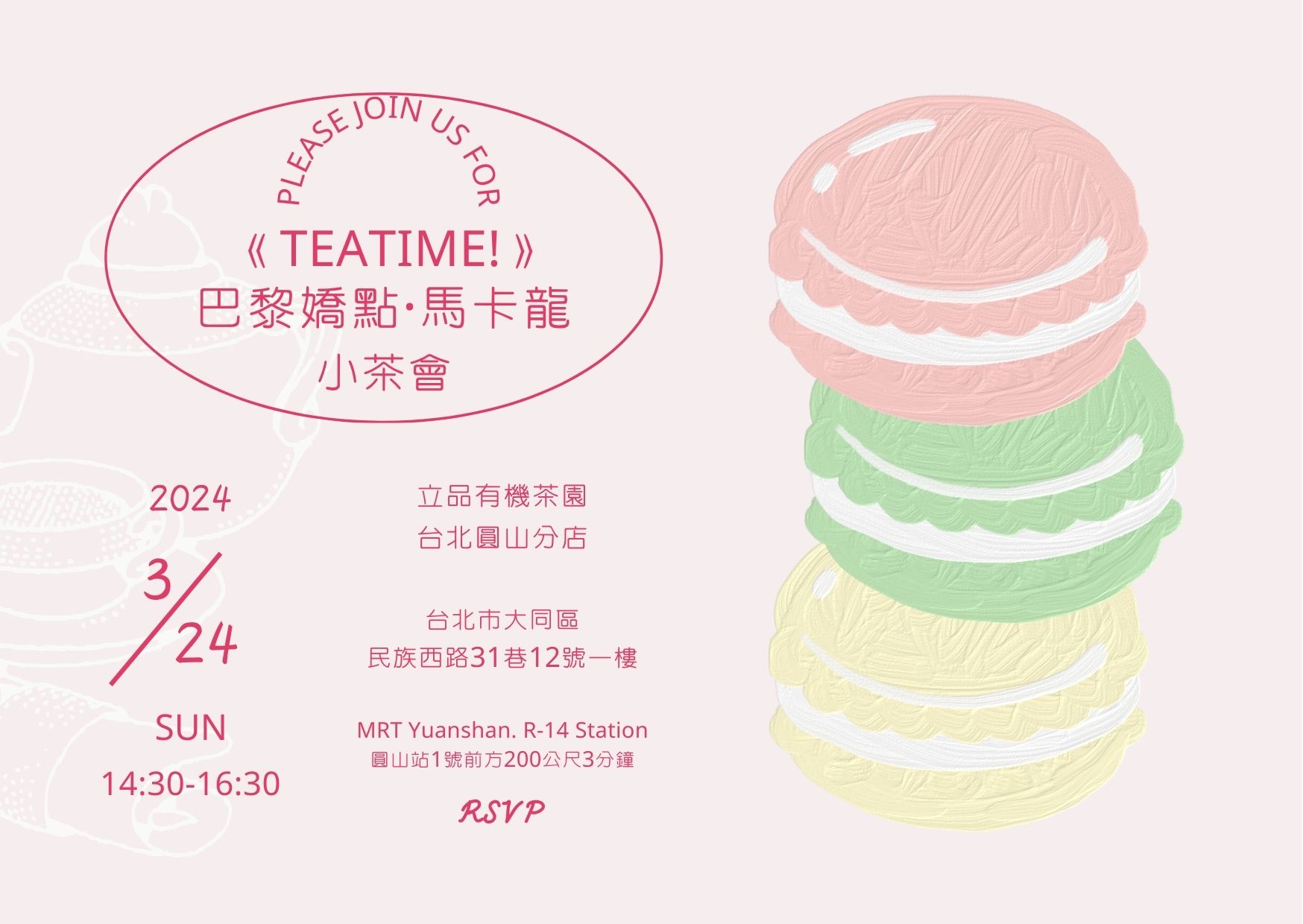 如果您對以上的問題感興趣,那麼您一定不能錯過這場《Teatime!》馬卡龍小茶會!