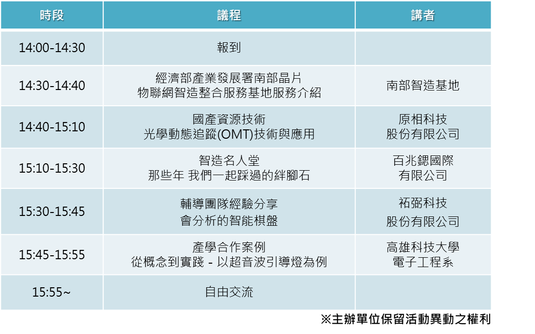 推薦參與:企業客戶、IoT相關創新創業團隊、對基地資源興趣瞭解之個人Maker