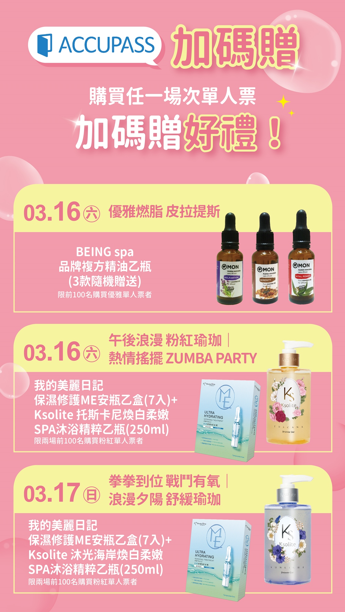 購買ACCUPASS粉紅單人票 即可獲得 #加碼贈