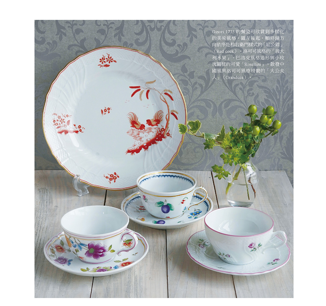 Ginori 1735 創立於1735 年,最初是以「多契」之名創立的窯廠,而1735 這個年分也成為品牌名稱。或許是「理查.基諾里」較為人熟知,因此2020 年為了回歸原點,將品牌名稱改為Ginori 1735。Ginori 1735 的特色是豐富的美術風格,從巴洛克風格到裝飾藝術,可欣賞到多樣化的商品。