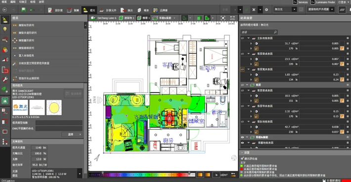 A.光學計算:DIALux Evo可完成精確光學計算,確定空間中的光線如何分布,預測照明效果。