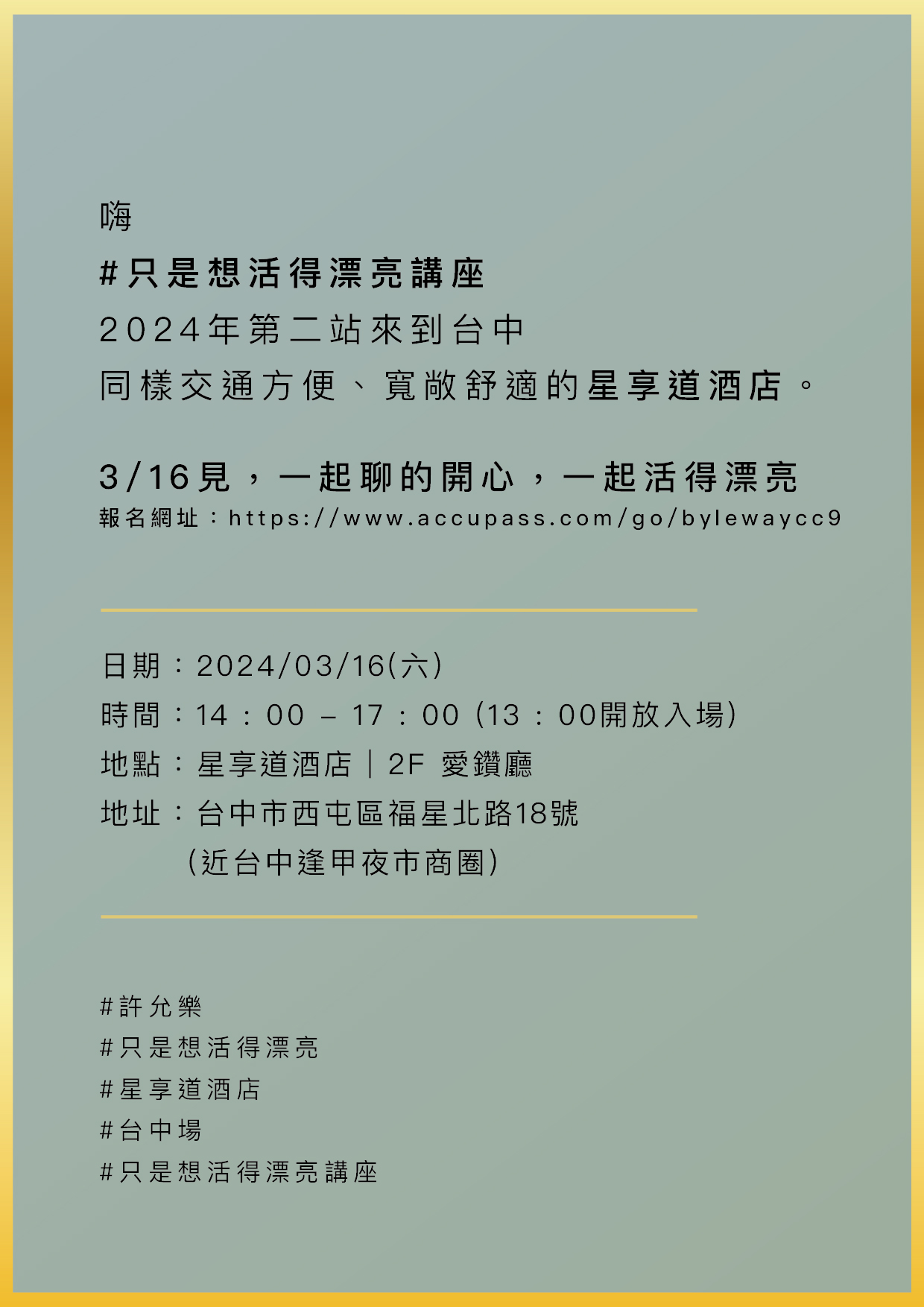 許允樂|只是想活得漂亮講座 |2024 台中場|星享道酒店