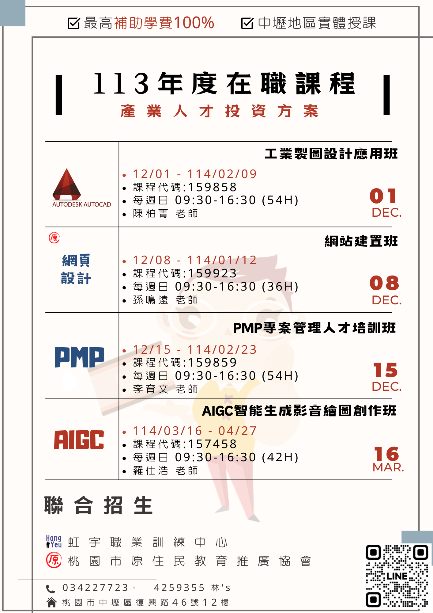 **18-29歲的青年朋友若無特定身份,參訓可申請青年獎勵金3000/月 歐!**