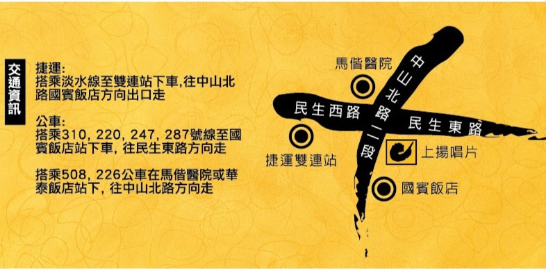 地點 │ 上揚唱片 門市部2樓(台北市中山區中山北路二段77-4號)