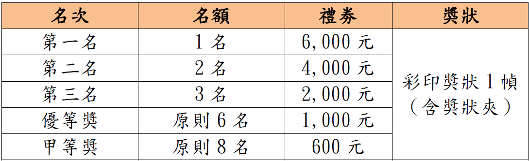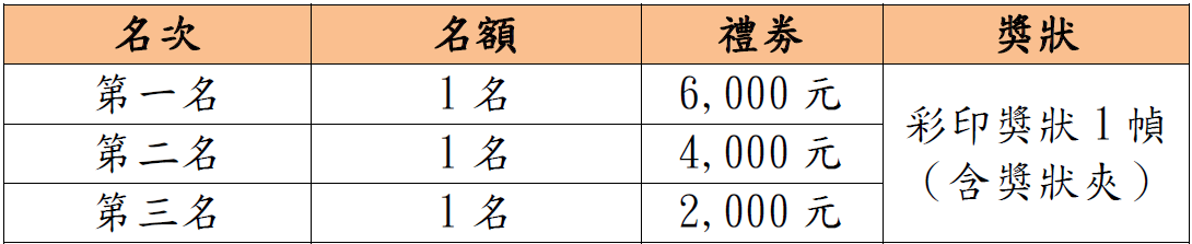 (一)一般組獎項如下表:
