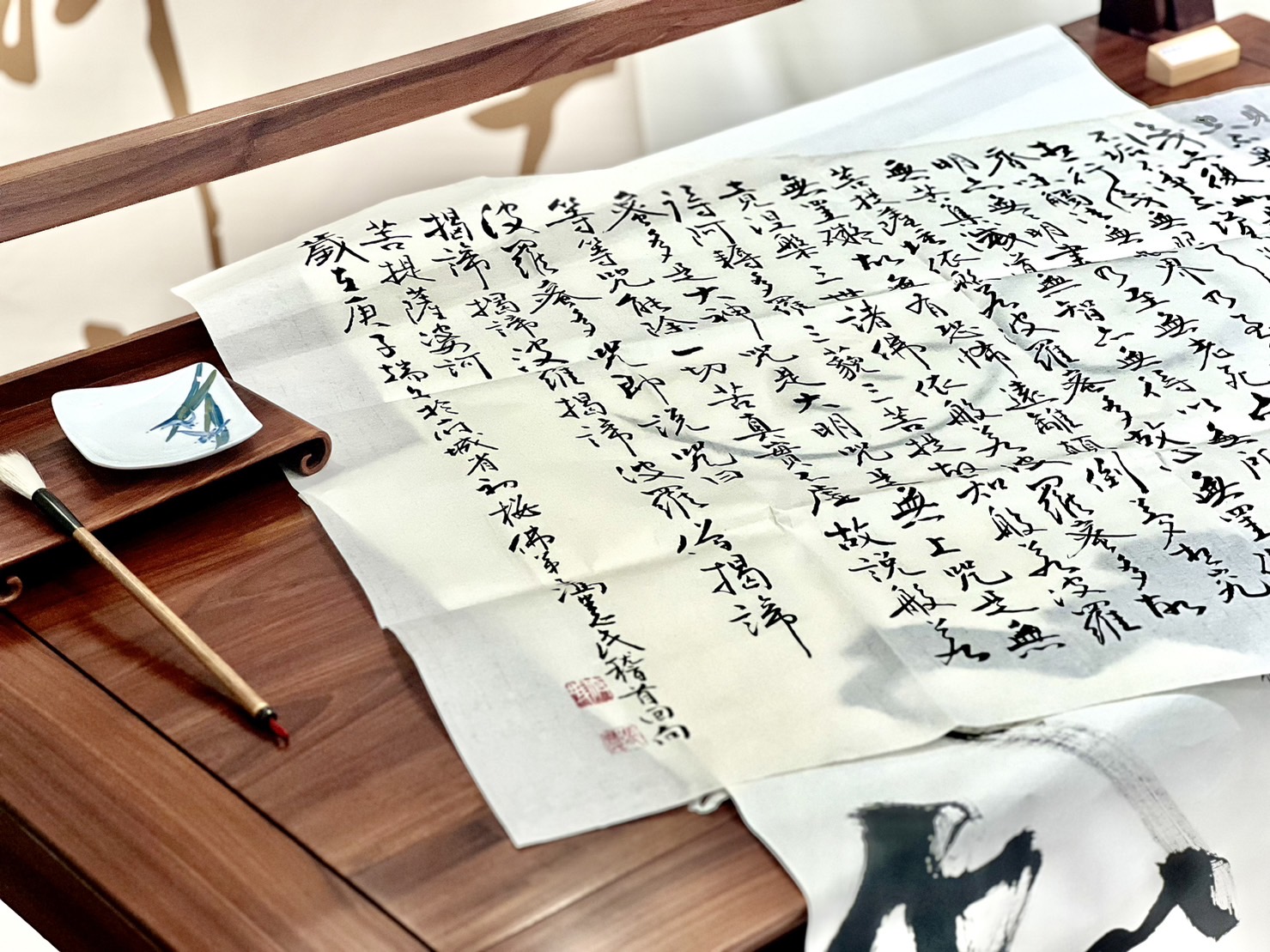 書法在線條上的斷續與行止筆法的抑揚頓挫,如同情感節奏留下的痕跡。書法線條包含點畫、結構、章法。再細分就可分為線形、線質與情性。線形是書法的外在形式,線質是書法的內在形式,而情性是貫穿書法藝術的基本元素。因此書法線條,別於西方線條的主要差異就是書法本身的「線性」,也是書法家表現出個人的思維。同樣的文字與詩句在每個時空與心境差異下,則完全呈現出截然不同的呈現,這也是欣賞書法的極大趣味。